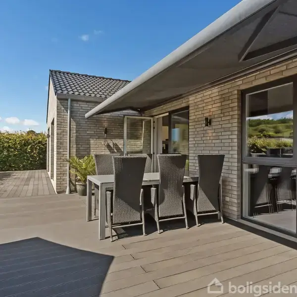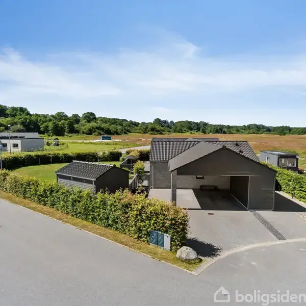 Åbent hus med tilmeldingskrav 1/2 - klik på billede - Allerede ved ankomsten fornemmer man, at denne ejendom tilhører en helt særlig klasse. Villaen er opført i 2014 i kompromisløs kvalitet, hvor æstetik og funktionalitet smelter sammen til en helstøbt helhed. Med 196 elegante og veludnyttede kvadratmeter, en carport på 34 m² med et integreret udhus på 8 m², samt yderligere et fritstående haveskur på 15 m², er rammen sat for en boligoplevelse ud over det sædvanlige. Den lysegrå facade med mursten fra Strøjer Tegl, sorte betontagsten, antracitfarvede træ/alu-vinduer fra Rationel og samme farve træbeklædning skaber et harmonisk og eksklusivt udtryk, som understreges af de afvalmede gavle. Ejendommen ligger i et roligt og attraktivt kvarter kun få minutters gang fra skov og en børnevenlig badestrand – en beliggenhed, der kombinerer privatliv, natur og nærhed til hverdagens bekvemmeligheder. Indenfor mødes man af en bolig, hvor intet er overladt til tilfældighederne. Jordvarmepumpe og gulvvarme i alle rum med trådløs styring, samt et Nilan luftudskiftningsanlæg sikrer en komfortabel base året rundt, mens smukke materialer og gennemtænkte detaljer skaber en eksklusiv atmosfære. De lyddæmpende gipslofter, centralstøvsuger og det imponerende loft til kip i køkken-alrummet løfter helhedsoplevelsen markant. Planløsningen er skræddersyet til den moderne familie med høje krav til både komfort og funktionalitet. Et dejligt stort bryggers, tre oplagte børneværelser og et stilrent badeværelse er placeret i den ene ende af boligen, mens en forældreafdeling i den modsatte ende tilbyder privathed og luksus i form af walk-through-closet og et elegant badeværelse. Et ekstra værelse giver fleksibilitet til kontor, gæsteværelse eller hobby. Husets naturlige samlingspunkt er det forrygende køkken-alrum, hvor de arkitektoniske linjer og det smukke lysindfald skaber en stemning, der er både indbydende og sofistikeret. Her er der plads til både hverdagsliv og festlige stunder. Franske døre fører videre til stuen, og hele hjemmet er indrettet med nøje udvalgt inventar fra HTH, der matcher husets høje standard. Udenfor venter en have der er anlagt med fokus på minimal vedligeholdelse og maksimal nydelse. Den store sydvendte terrasse med en stor markise, bliver jeres primære udemiljø, og indbyder til lange sommeraftener i private rammer, mens den store grønne plæne giver mulighed for afslapning og leg i rolige omgivelser. Villaen fra 2014 repræsenterer ikke blot moderne arkitektur, men også byggekvalitet i topklasse. Den energieffektive konstruktion og det særdeles lave energiforbrug sikrer en komfortabel og økonomisk attraktiv bolig med lave driftsomkostninger. Placeringen i det stille villakvarter er ideel med kort afstand til skolebus, daginstitutioner, foreningsliv, kulturtilbud og indkøb. Der er få minutters kørsel til Frederikshavn og hurtig adgang til motorvejen mod Aalborg. Busforbindelser i både nord- og sydgående retning samt skolebus lige i nærheden gør hverdagen nem og fleksibel. Dette er en bolig for jer, der ønsker en moderne villa, hvor design, kvalitet og beliggenhed går op i en højere enhed. Her får I en eksklusiv ramme om hverdagen – elegant, tidløs og lige til at flytte ind i.
