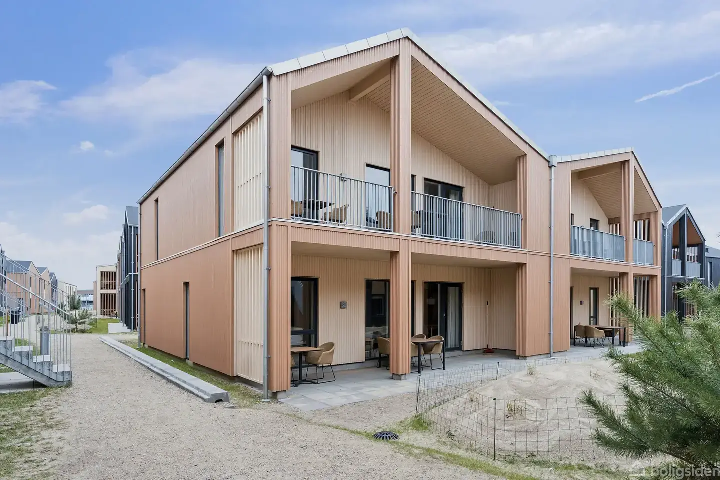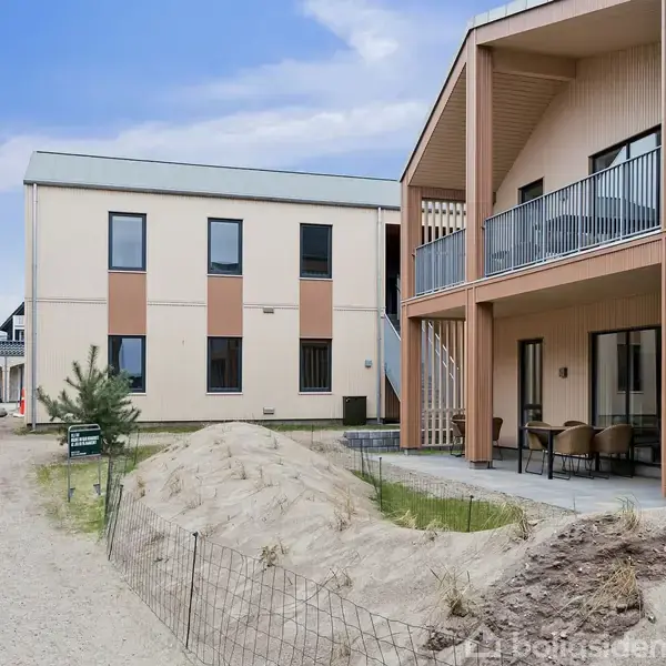 Det her er sådan et sted, hvor skuldrene automatisk ryger ned et par centimeter. Midt i Strandbyen ved Lalandia Søndervig ligger denne nye ferielejlighed af typen Beach 6 – klar til både egne ferier og gæster, der gerne vil lidt tættere på Vesterhavet end sofaen derhjemme. Lejligheden er fra 2025 og byder på 84 m², tre soveværelser og et åbent køkken-alrum, hvor der er plads til både morgenkaffe, aftensmad og de klassiske “hvad skal vi i morgen?”-snakke. Det hele er holdt lyst, enkelt og nemt – præcis som det skal være. Udenfor venter den overdækkede terrasse, hvor dagen typisk starter stille og slutter lidt langsommere, mens børnene stadig har krudt i benene. Legepladsen og vinbaren ligger lige om hjørnet, så der er både plads til store og små. Og så er der økonomien – for den følger faktisk med feriestemningen:Der er en estimeret udlejningsindtægt på ca. 175.000 kr. om året, hvilket gør det her til et fritidshus, der ikke bare står og pynter. Her bor du i gåafstand til badeland, aktiviteter, caféer og Søndervigs liv – og samtidig tæt nok på klitterne og havet til, at det stadig føles som rigtig ferie. Kort sagt:Et sted, der er nemt at eje, nemt at leje ud – og endnu nemmere at holde fri i.