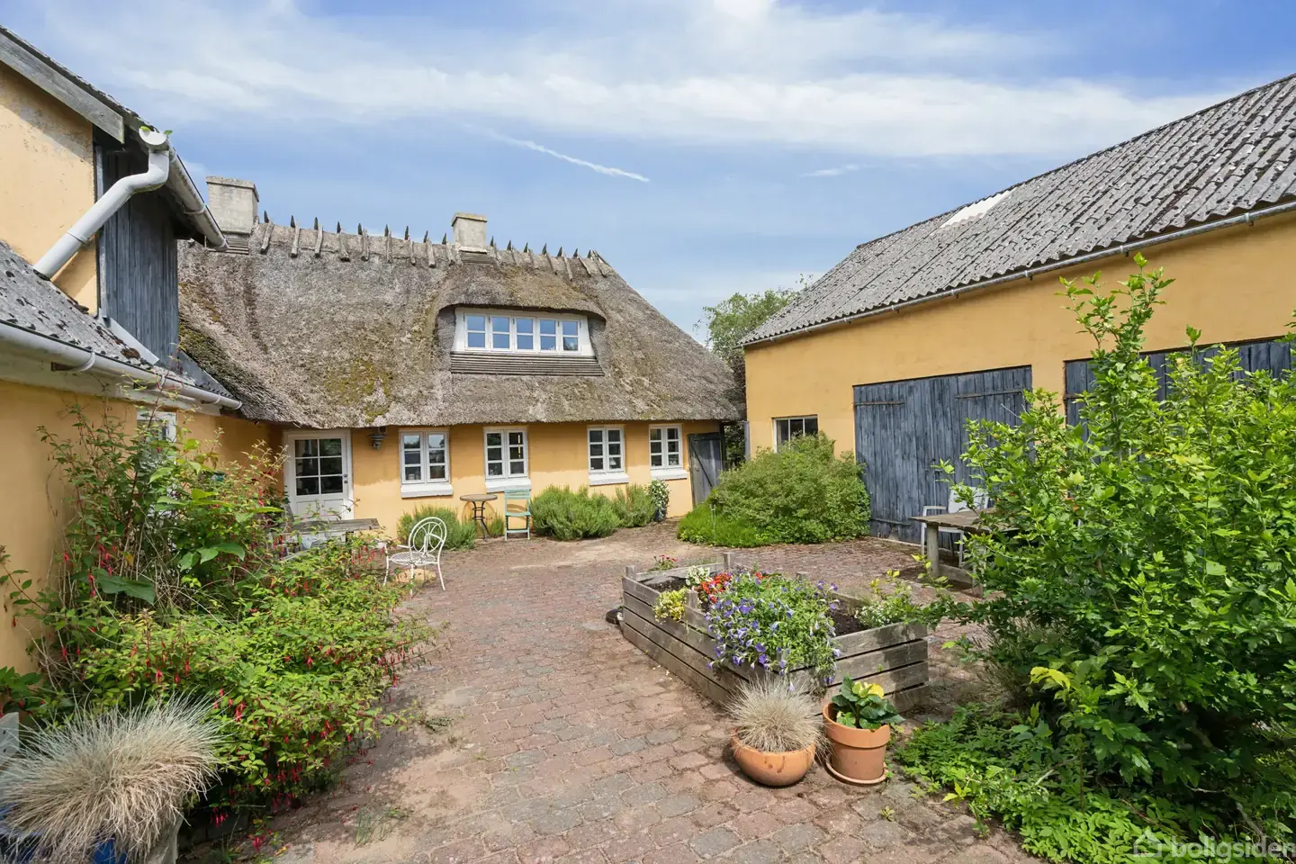 Charmerende landejendom mellem marker, vand og by.I kan nu rykke hverdagen ud i fredelige og naturskønne omgivelser, hvor hver eneste dag er en oplevelse med dyr, der kigger forbi, og hvor årstidernes skiften kan observeres lige uden for vinduerne. Den fine ejendom fra 1875 ligger nemlig på en 2.480 kvadratmeter stor grund uden tætliggende naboer og med økologiske marker omkring sig, så I får et dejligt ugeneret udgangspunkt for tilværelsen, som alligevel blot er en kort cykeltur væk fra byen.