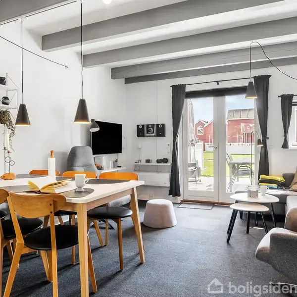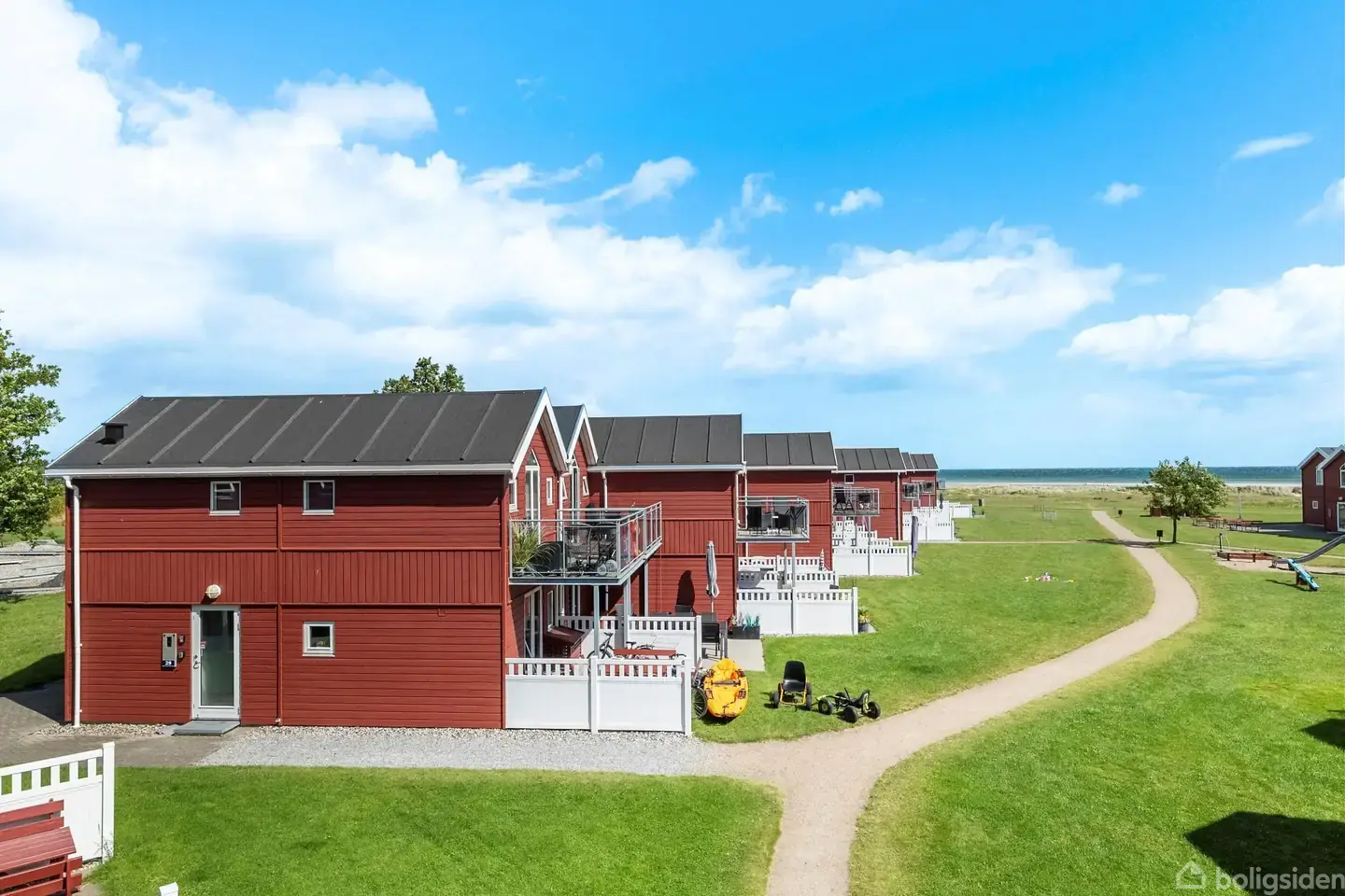 Åbent hus med tilmeldingskrav 2/2 - klik på billede - Midt i Øster Hurup, tæt på havnen og lige ned til den børnevenlige strand, finder du denne flot og velholdte ejerlejlighed i to plan – med både terrasse og altan. Fra entréen er der adgang til et pænt badeværelse og videre til et rummeligt køkken-alrum med god skabsplads, spiseplads til hyggelige måltider og udgang til en stenbelagt terrasse. Herfra er der også adgang til første sal. På første sal finder du soveværelser med god loftshøjde samt et velindrettet repos, der også kan bruges som ekstra soveplads. Fra et af værelserne er der udgang til en altan - perfekt til morgenkaffen. Øster Hurup er et ferieparadis for hele familien med shopping, gode restauranter, lystbådehavn og det populære Øster Hurup Legeland. Alt ligger i gåafstand Ingen bopælspligt – brug boligen, præcis som det passer dig. Der er også mulighed for udlejning. Ejerforeningen står for al udvendig vedligeholdelse, hvilket bla.a inkluderer udskiftning af vinduer og tag, græsslåning, myrebekæmpelse, udvendigt malerarbejde, to årlige vinduespudsninger, bygningsforsikring og meget mere - så du kan nyde livet ved kysten uden bekymringer.
