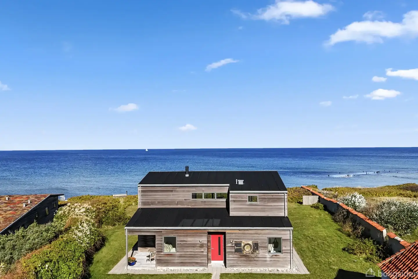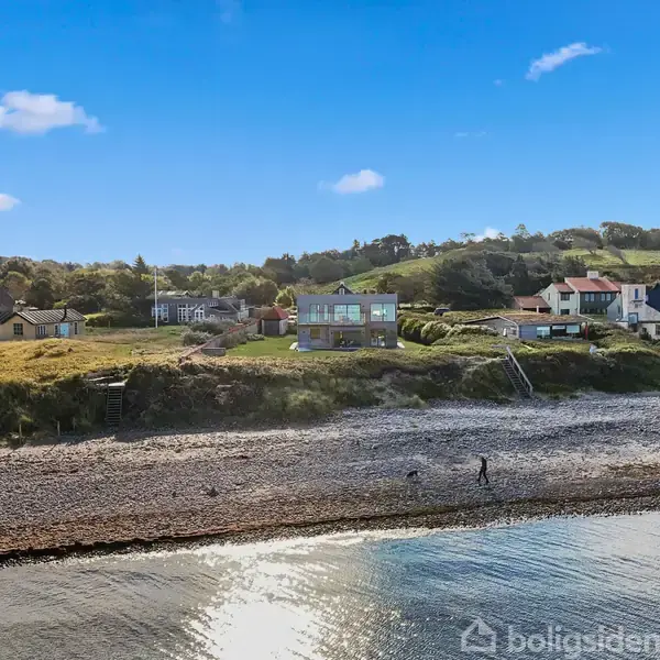 Arkitekttegnet liebhaveri i første række til vandet Velkommen til et sjældent stykke kystpoesi: Et arkitekttegnet sommerhus fra 2015, placeret i første række direkte til Kattegats blå spejl, hvis grund glider helt ned til strandbredden. Her mødes skandinavisk enkelhed og raffineret materialevalg med naturens storslåede scenografi — store glaspartier lader lyset og havets skiftende farver blive en del af boligens indre, og panoramaudsigten fra begge etager er simpelthen sublim. Boligen — æstetik,