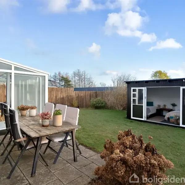 Åbent hus med tilmeldingskrav 15/2 - klik på billede - På Strandgårdshaven 12 i Tisvildeleje får du et skønt fristed, hvor udelivet fylder mindst lige så meget som kvadratmeterne indenfor. Her bor du i en indbydende fritidsejerlejlighed med 44 m² bolig samt en lys og anvendelig udestue på 16 m² – og det hele suppleres af en helt privat, ugeneret have med flere solkroge, spiseplads og loungeområde. Boligen er indrettet, så den føles både let og rummelig: Entré og køkken ligger samlet, og herfra åbner hjemmet sig mod opholdsstuen, hvor dagslyset og de store glaspartier trækker haven helt tæt på. Badeværelset fremstår lyst og indbydende med en enkel, funktionel indretning, hvor pladsen er udnyttet optimalt. 1 godt værelse samt et walk-in-closet, hvilket giver fin opbevaringsplads og en dejlig “sommerhus-ro”, hvor tingene kan gemmes væk. Udestuen bliver hurtigt favoritstedet: et fantastisk ekstra rum til lange middage, brætspil og afslapning – og med skydedør ud til terrassen kan du nemt lade inde og ude flyde sammen, når vejret er med dig. På grunden findes derudover et godt og isoleret udhus med mange anvendelsesmuligheder. Det er i dag indrettet meget brugbart og kan eksempelvis bruges til hobbyrum og hjemmearbejdsplads – kun fantasien sætter grænser. Til ejerforeningen hører fælles parkering, og til netop denne fritidsejerlejlighed er der desuden etableret egen indkørsel og en helt separat indgang, så man får en ekstra bekvem adgang til boligen. Alt i alt en virkelig hyggelig og veludnyttet feriebase i Tisvildeleje – med masser af uderum, en skøn udestue og fleksible ekstra-kvadratmeter, der gør det nemt at invitere familie og venner med på tur.