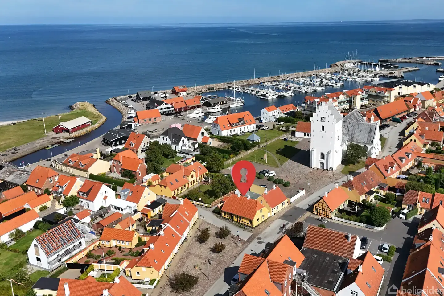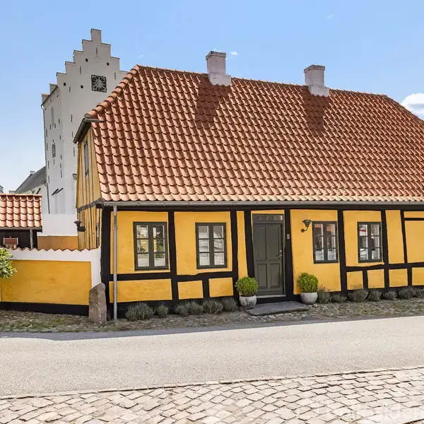 Midt i Sæbys mest stemningsfulde kvarter, hvor bindingsværk, brosten og havbrise smelter sammen i en charmerende helhed, ligger en af byens mest ikoniske og historisk betydningsfulde bygninger – byens gamle rådhus. Denne fredede og sjældent udbudte ejendom er en ægte arkitektonisk perle, der kombinerer næsten 300 års historie med moderne komfort og sans for æstetik.Opført omkring år 1720 og smukt bevaret gennem århundrederne, fremstår villaen i klassisk bindingsværksstil med den karakteristiske