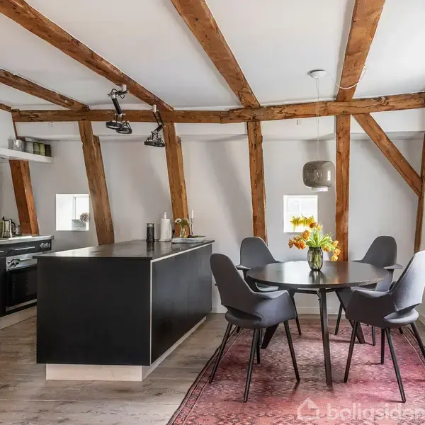 Vidunderligt levested på 146 m² (BBR) i Christianshavns eftertragtede Irgens Gaard. Fredet, naturligvis, og en ikonisk reference til, hvor vidunderligt der kan være i det gamle København, der sætter sine rødder tilbage til Christian IV’s storhedstid. Irgens Gaard indeholdt den gamle Artillerikaserne ud mod Strandgade, og opgang G, som denne lejlighed er beliggende i, blev opført i år 1700, forlydende som pakhus, sammenbygget med den sideliggende bygningsdel. I nyere tid er bygningen blevet transformeret til ejerlejligheder, og udbuddet hér vedrører en af de særdeles attraktive penthouselejligheder. Adgangen til boligen er en rejse gennem Københavns historie, og heldigvis er det lykkedes at fortælle videre på en bid af vores kulturarvs fineste fortællinger. Stedet er et mageløst arrangement af historiske bygninger, der tilmed omgrænser et af Københavns skønneste gårdmiljøer med store kastanjetræer, brolagt med ujævne belægning af marksten og de smukkeste bygningsfacader i Christianshavns ikoniske gule facade og røde vingetegl på taget. Lejligheden fordeler entré, hvorfra der er adgang til stort soveværelse, smagfuldt badeværelse med brus og grundplanets store alrum med funktionelt indrettet køkken, spiseafdeling og opholdsstue. Herfra trappeløb til lejlighedens øvre niveau, der i dag er indrettet som stor opholdsstue på mere end 40 m² med loft til kip – et fantastisk rum, som omfavner en med nærhed og hjertelighed. Dette er en penthouselejlighed af en særlig fin karat, som kun meget sjældent ses udbudt i København, udrådbstegn. Og ingen tvivl om, at Christian IV havde været stolt over at se dette kompleks af bygninger bestå, den dag i dag.