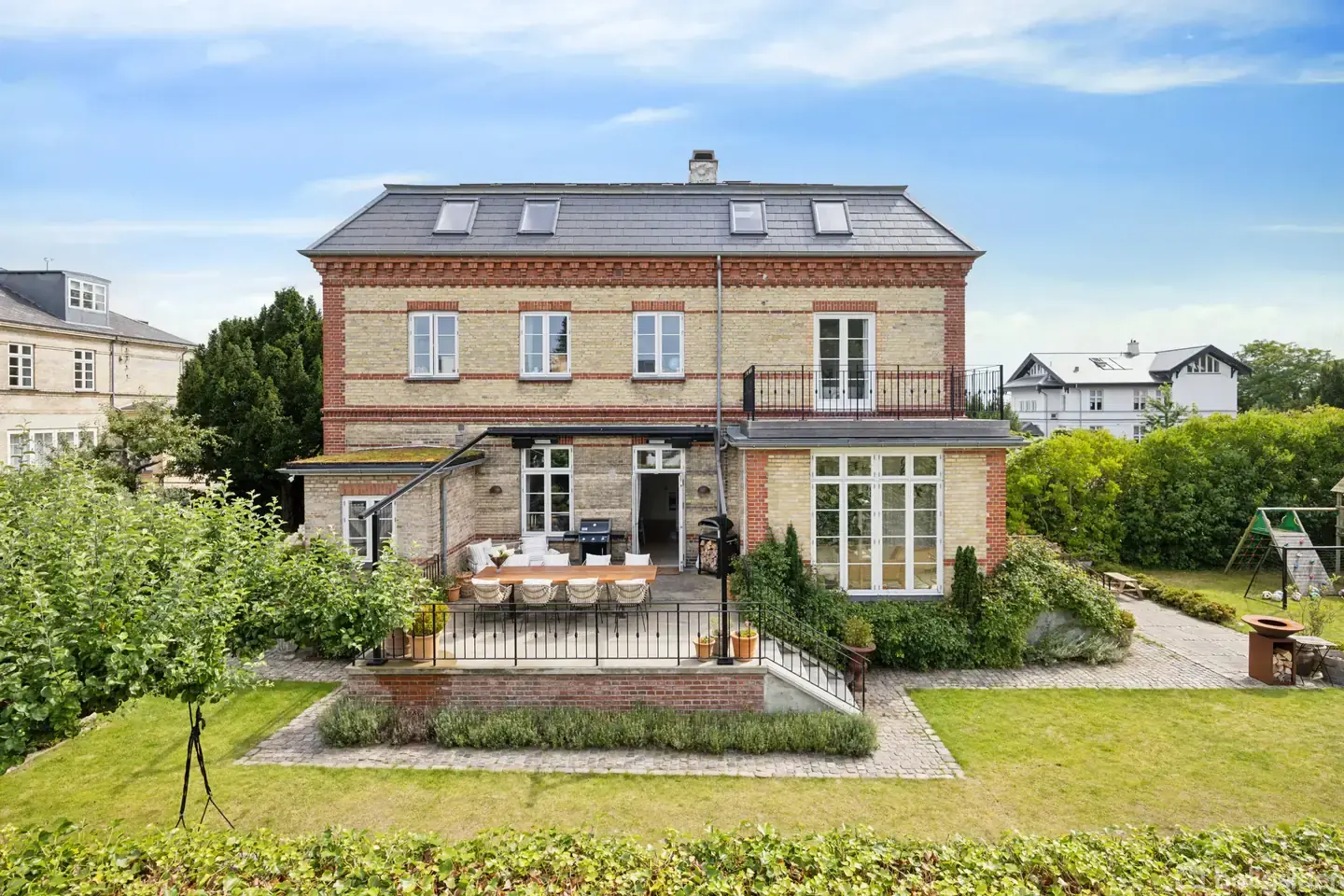 På en af landets mest mondæne villaveje udbyder vi nu et dobbelthus i særklasse. I overtager nøglerne til den ene halvdel af en smuk og herskabelig ejendom, der daterer sig tilbage til år 1900. Hjemmet kommer altså med en indbygget charme, som er bevaret i takt med, at de flere hundrede etagemeter er istandsat fra A-Z. Det er liebhaveri for selv de mest kræsne købere! Villavejen løber parallelt med Strandvejen, så I bor ved vandet, på en adresse fra allerøverste hylde, og I bor samtidig tilbage