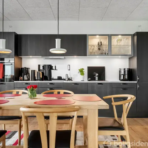 Åbent hus med tilmeldingskrav 2/2 - klik på billede - Fantastisk beliggende stueplans ejerlejlighed på 84 veludnyttede m2 og med en unik udsigt over Ringkøbing Fjord. Ejerlighedheden er fra 2020 og er opført i bæredygtige og stilrene materialer, som er specialt udvalgt til det naturskønne Naturbydelen i Ringkøbing. Boligen er indrettet med to gode værelser, hvoraf det ene har flot udsigt over fjorden. Badeværelset er med bruseniche og vaskemaskine samt væghængt toilet og med et materialevalg, som er afstemt stilen i resten af lejligheden. Et dejligt køkken med lækre detaljer. Stuen ligger i åben forbindelse med køkken/alrummet og de store vinduespartier giver både et godt lysindfald og samtidig en fantastisk udsigt over Ringkøbing Fjord. Fra både alrum og det ene værelse er der udgang til den store syd/vestvendte terrasse, og fra begge døre træder man ud i overdækkede arealer, som udgør en betydelig del af den 37 m2 store terrasse, hvor naturen og omgivelserne kan nydes i fulde drag Der er gulvvarme i hele lejligheden, som desuden er forsynet med Genvex anlæg, hvilket er med til at give et sundt og dejligt indeklima. Der hører redskabsrum på 7 m2 med til lejligheden, som desuden er forberedt til ladestander, så man bare skal tilslutte egen lader til opstillet stander. Området er kendetegnet ved den skønne natur, og de udbyggede stisystemer giver let adgang til både skoven og de mange små søer. Her er der mulighed for at fiske eller tage en hyggelig tur med trækfærgen. Der er desuden både frugt- og bærhaver til fri afbenyttelse, og turene i naturen kan varieres med den korte afstand til fjorden.