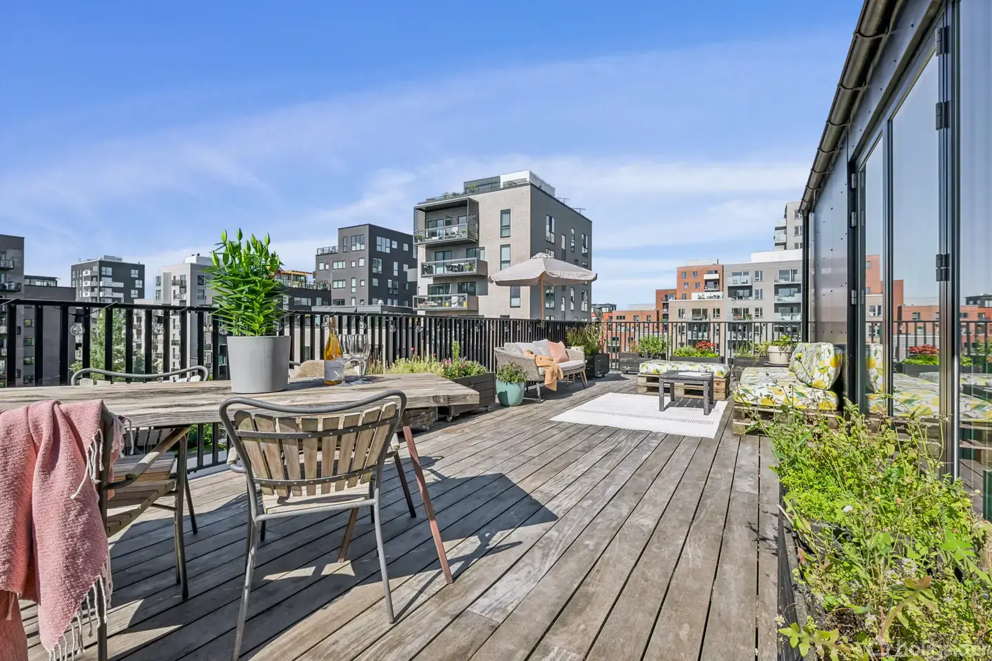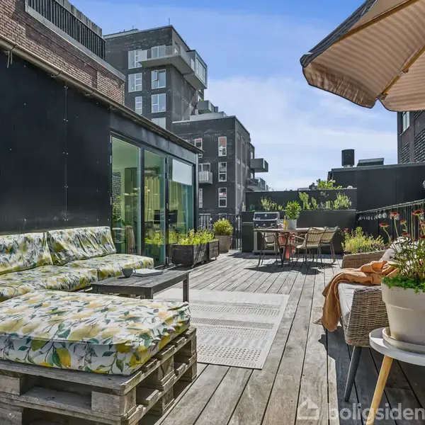 Lejlighed i to plan og med 60m² solrig tagterrasse + 15 m² altan – I alt 75 m² private udearealer
