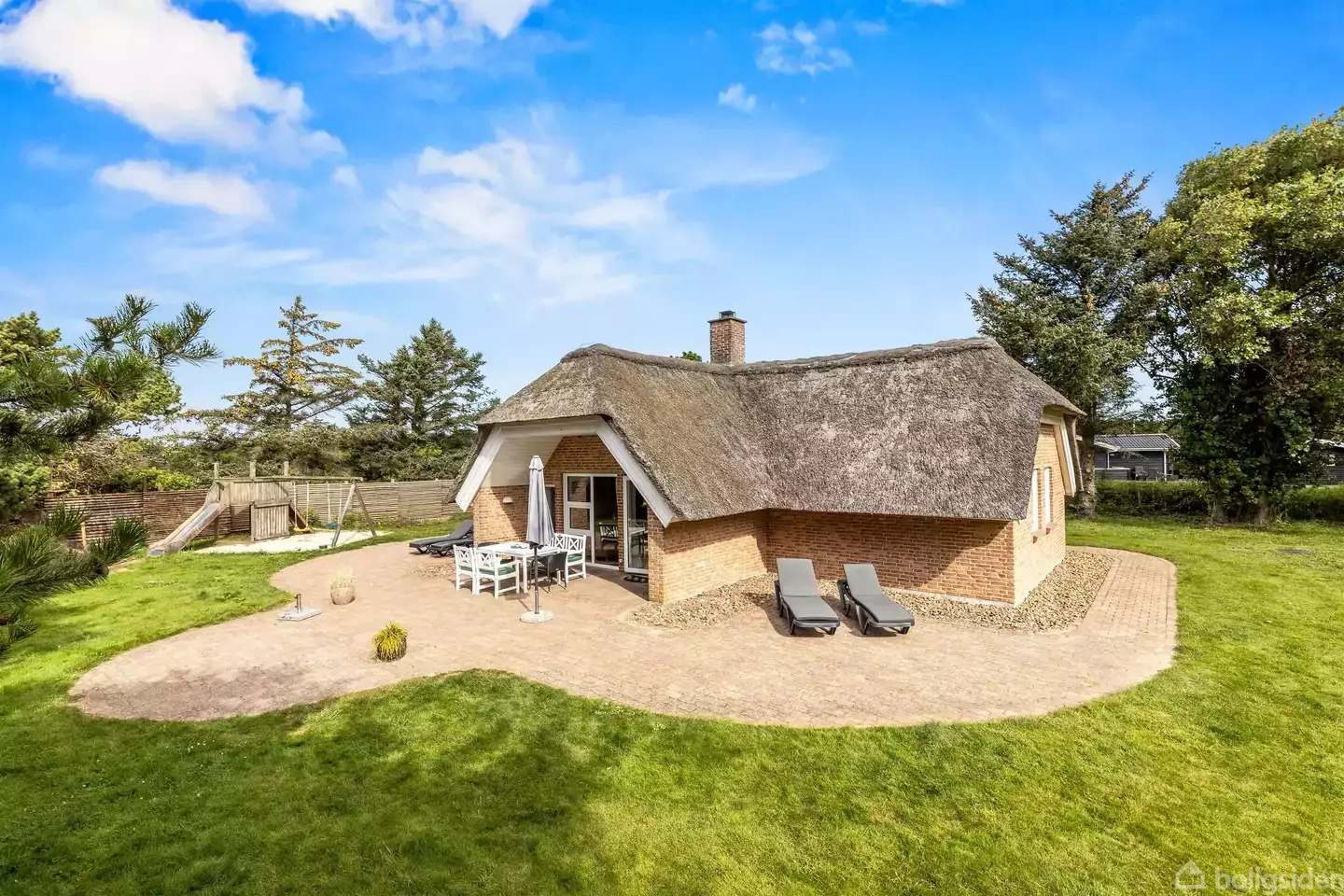 Enestående beliggenhed kun 150 meter fra Hvidbjerg Strand ligger dette solide murstenssommerhus med stråtag. Drømmer du om et sommerhus med klassisk charme og moderne komfort? Dette stråtækte feriehus på 109 m2 ligger blot 150 meter fra Vesterhavet og byder på alt, hvad hjertet begærer. Indenfor mødes du af et lyst og rummeligt køkken/alrum med brændeovn, gulvvarme og direkte udgang til den solrige terrasse. Køkkenet er veludstyret, og den hyggelige spiseplads indbyder til hygge. Huset rummer tre gode værelser, alle med dobbeltsenge, Derudover er badeværelset udstyret med både spa og sauna. Den 1.698 m2 store indhegnede grund sikrer et dejligt udeliv i private omgivelser. Blåvand ligger kun 1,5 km væk og byder på hyggelige butikker, caféer og restauranter. Vi du opleve mere, er seværdigheder som Blåvandshuk Fyr og Tirpitz museum lige i nærheden. Dette er det ideelle sommerhus for dig, der ønsker nærhed til havet, fredelige omgivelser og høj komfort. Udlejning via Esmark - forhør nærmere... Indeholder bl.a.: Entre med skabsplads. Lyst og åbent køkkealrum: Hyggelig stue med brændeovn og hems. Tre gode og rummelige værelser. Lækkert badeværelse med topersoners spa og sauna.