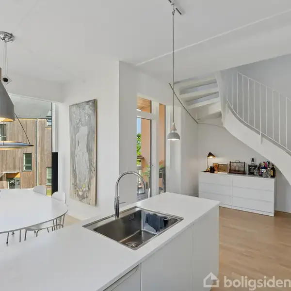 Flot liebhaverlejlighed ud til Helsingør Nordhavn.Lige ud til Helsingør Nordhavn finder I denne liebhaverlejlighed, der strækker sig over to etager i en smuk ejendom fra 2019. Den nederste etage er dedikeret til et værelse, et badeværelse og et køkken-alrum, mens den øverste etage består af to værelser mere, et toilet og en stue. Hertil får I to altaner og et fuldkommen fantastisk nærmiljø lige ud til vandet og Strandpromenadens charmerende omgivelser. Alle hverdagens fornødenheder er ligeledes