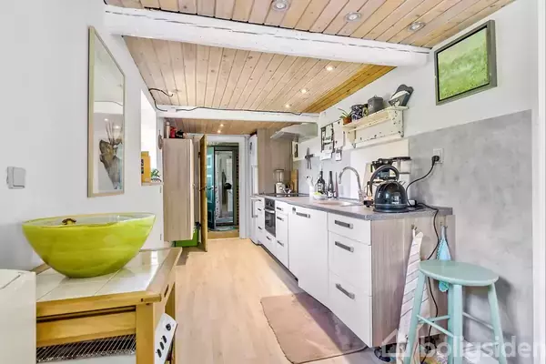Her er hygge og charme for alle pengene, med stråtag og bindingsværk, samt kort afstand til vandet og med en fantastisk udemiljø, med terrasser, vildmarksbad, shelter, brusemiljø m.v. Og så kan man tilmed betegne byggeriet som bæredygtigt, da der er tale om genbrug. Huset er et oprindeligt hus, der har ligget i Ørsted by, og som herefter er flyttet, stump for stump, af en bygmester, der tidligere har ejet sommerhuset. Så her kan du samtidig glæde dig over, at være bæredygtig, mens du nyder de afslappende omgivelser i dit sommerhus. St.Sjørup er kendt for at være et meget roligt og naturskønt sommerhusområde uden campingpladser og discoteker, hvor man nyder stilheden og sommerhuslivet. Bestil en uforpligtende fremvisning hos din lokale EDC Mægler, Det Runde Hus, på 86 49 44 44.