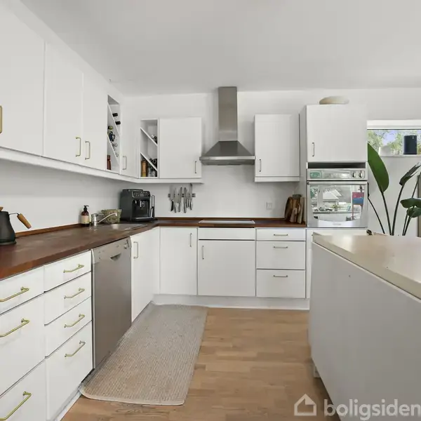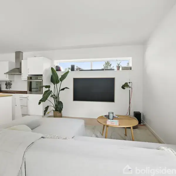 Velkommen til Strandtoften 1 – en charmerende og velindrettet kædevilla beliggende i det eftertragtede og fredelige kvarter i Egå, tæt på både naturskønne omgivelser og den populære strand ved Skæring. Her får du en lys og moderne bolig fordelt på tre etager, som tilbyder masser af plads og fleksibilitet til både børnefamilien og det pladskrævende par.I stueplan byder boligen på et åbent og indbydende køkken-alrum, hvor det stilrene, hvide køkken med mørke træbordplader danner en flot kontrast.