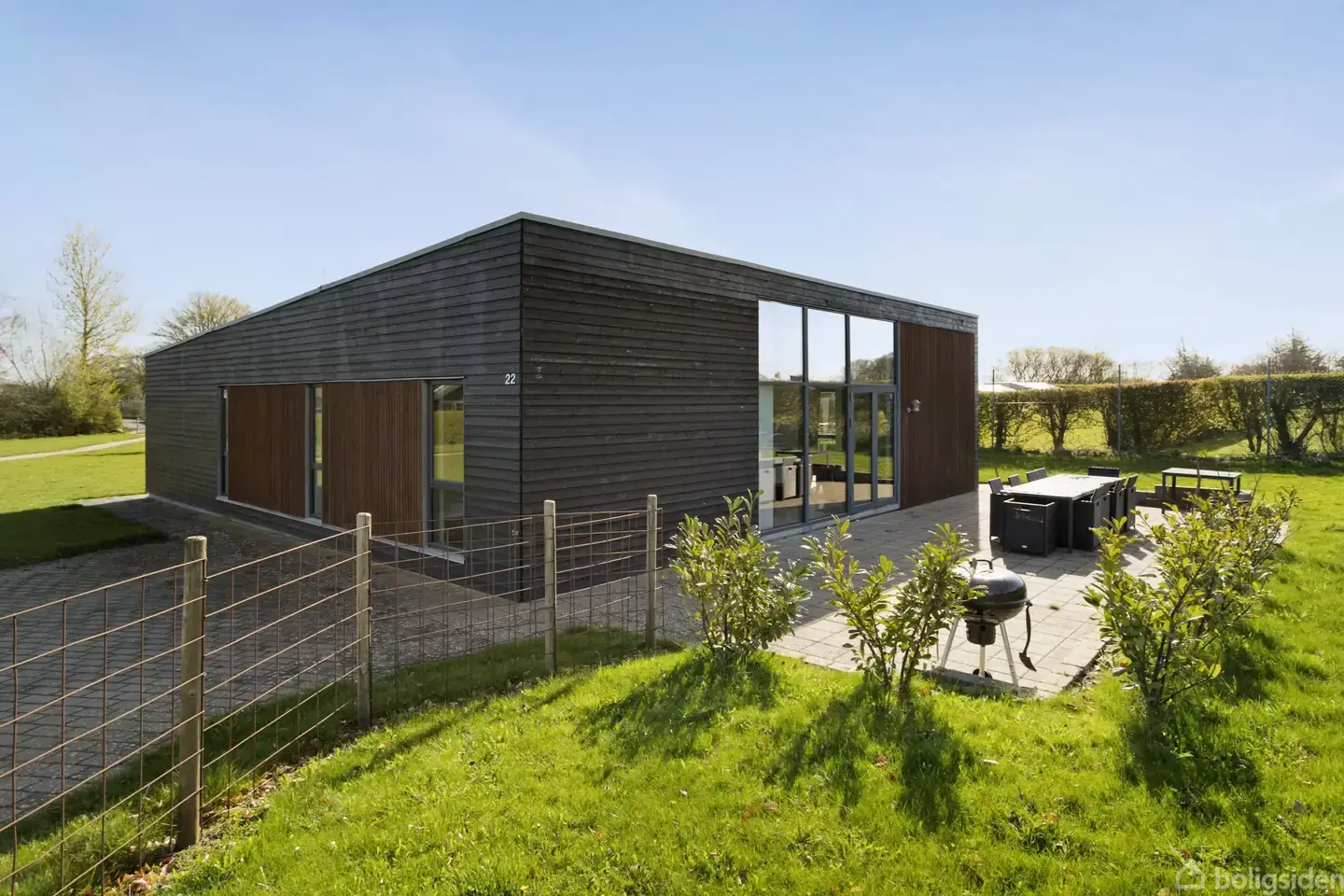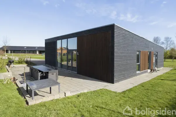 Stort og moderne fritidshus på en solrig grund i Saksild Strand