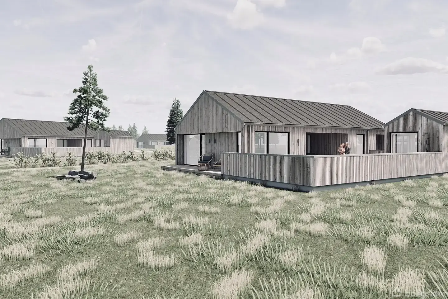 Midt i det attraktive sommerhusområde ved Vejlby Klit opføres 24 nye, arkitekttegnede sommerhuse – alle smukt placeret i en halvcirkel omkring et grønt fællesområde med sø. Her får du et sommerhus med kig til naturen, kort afstand til Vesterhavet og en bolig, hvor kvalitet og funktionalitet går hånd i hånd.Husene opføres med lodret ubehandlet Thermo Wood, som med tiden får en smuk grå patina og giver området et moderne og stilrent præg. Alle huse har store træterrasser med overdækkede opholdsare