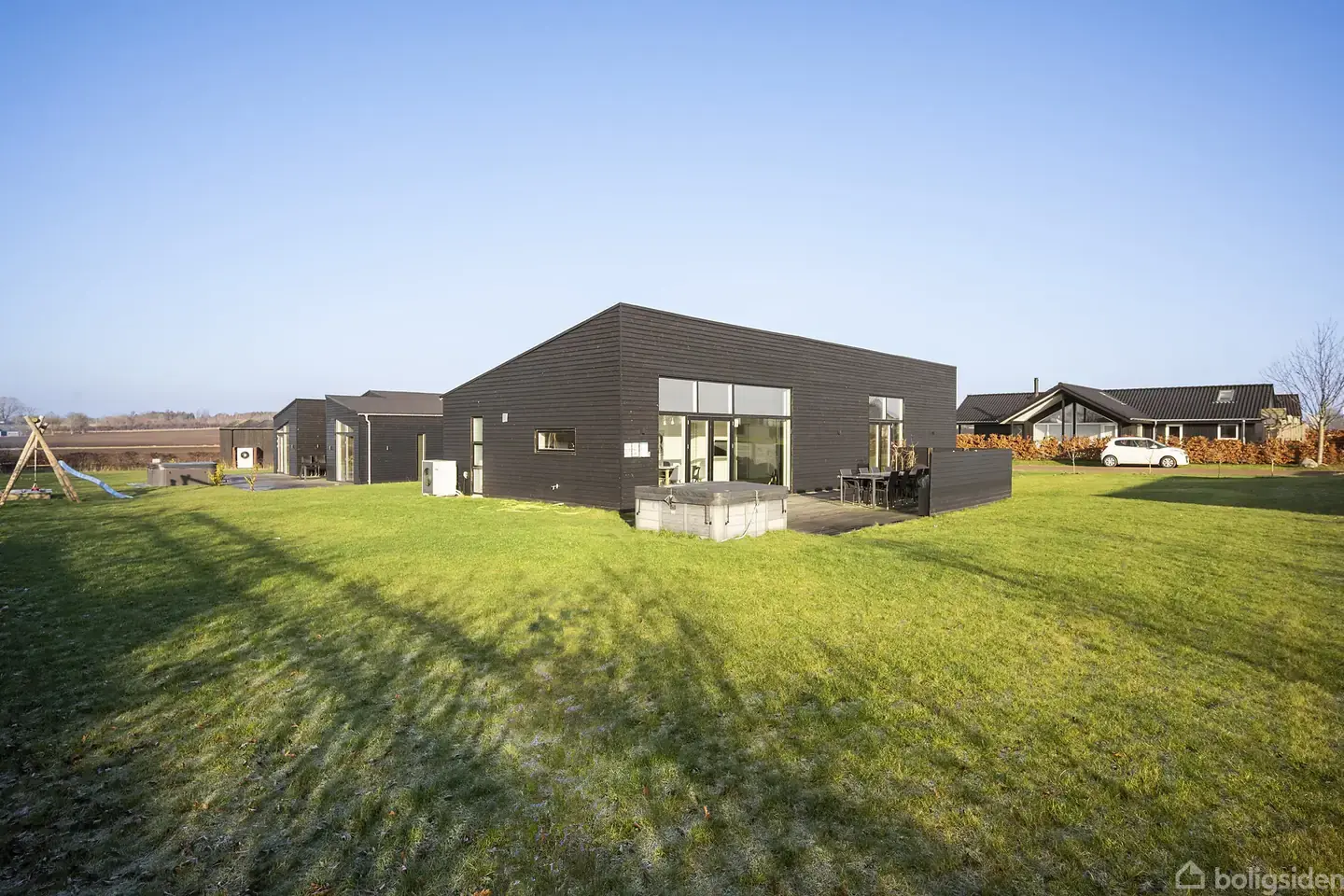En 139 kvadratmeter stor ejendom rimer sjældent på fritidshus – men det er ikke desto mindre den pakke, der åbner sig i Odders smukke landskab. Opført i 2022 med en hånd, der spinder den røde tråd af stilfulde moderne elementer, står dette eksklusive ferieparadis med panoramavinduer som en perle klar til nye minder. Funktionalismen har ikke været forgæves, for her er alle de rene linjer med til at skabe rammen om en tilværelse helt uden spildplads. Den rektangulære form lader alle opholdsrum mø