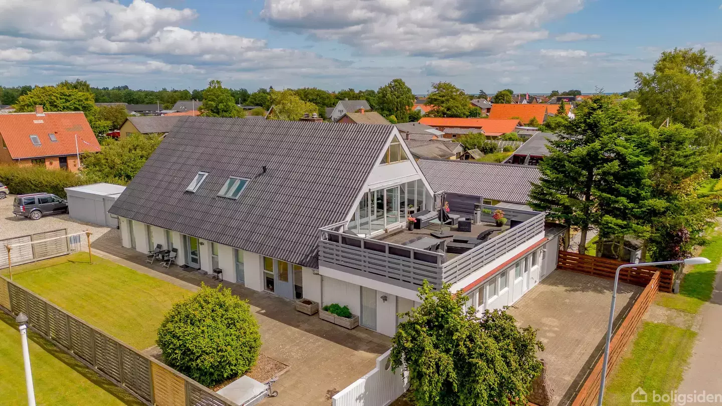 Området:Flot ejendom beliggende på stor grund og midt i Hou by, hvor man har indkøbsforhold, fritidsaktiviteter og fantastisk natur med skov og stranden indenfor kort afstand. Særdeles hyggeligt havnemiljø med flere sommeraktiviteter og plads til lystsejlerne. Desuden er der kun ca. 30 km til Aalborg centrum. Ejendommen:Der er tale om en velholdt ejendom i 3 plan, som er opført 1972 i letbetonsten og eternittag, som er malet og fremstår i god stand. Gode arealer til parkering og skur til opb