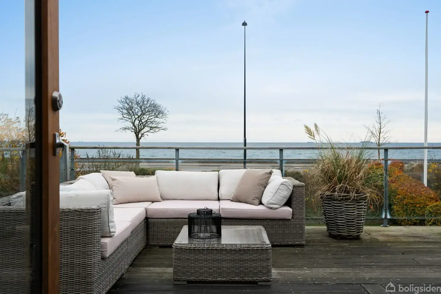 På den eftertragtede Gamle Strandvej i Charlottenlund udbydes en liebhaverbolig i første række til Øresund. Ejendommen på Strandvejen 192B består af en moderne og arkitektonisk gennemført bolig på ca 200 etagemeter samt en solrig, anlagt grund på 700 m² med panoramaudsigt over København, Sverige og Charlottenlund Søbad. Ejendommen er opført i 2007 og kendetegnet ved minimal vedligeholdelse, rene linjer og et konsekvent valg af eksklusive materialer. En el-betjent port giver adgang til en ankomst med carport, hvor boligen åbner sig med lysindfald fra både øst og vest. Indenfor findes en entré med indbyggede skabe, to børneværelser - heraf det ene med udgang til haven mod øst - samt et badeværelse. Køkken-alrummet fra Unoform udgør boligens centrale rum med udgang til en vestvendt, overdækket terrasse og den omkringliggende have. I forlængelse heraf, adskilt af en pejseindsats, ligger spisestuen med udgang til haven mod øst. En åben trappe fører til førstesalen med en udsigtsstue, der har panoramaudsigt over Øresund og adgang til en stor terrasse mod vandet. En yderligere pejseindsats opdeler et område mod en tv-stue mod vest, hvor der også er adgang til en terrasse. Masterafdelingen omfatter et soveværelse med udsigt over Øresund og adgang til egen terrasse samt et badeværelse med spa, separat bruseniche og et mindre walk-in-rum. Grunden er anlagt med flere terrasser mod både havet og vest, så solforholdene kan udnyttes hele dagen. Beliggenheden er central mellem gammel og ny Strandvej, få minutter fra Hellerup og Jægersborg Allé og med kort afstand til Charlottenlund Skov, Søbadet og København. En bolig, hvor eksklusivitet, ro og materialekvalitet går hånd i hånd. Boligen rummer god plads til familien, men fungerer også som en moderne og luksuriøs egoistbolig. Alt er gennemtænkt, funktionelt og skabt til et liv med komfort, udsigt og arkitektonisk klarhed.