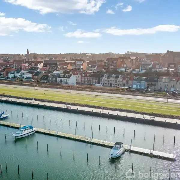 Det er på en blind vej ved havnen i Struer, at man finder dette moderne, treetagers rækkehus med carport (opføres i 2026) på modsatte side af vejen. Der er tale om et nyere ubrugt kvalitetsbyggeri, som ligger lige ud til Struer Havn med udsigt over Limfjorden og gåafstand til bymidten. 183 kvadratmeter er fordelt i boligen, hvor solide materialevalg, stilrent design og behagelige lysindfald er gennemgående. Der er installeret elevator og endelig medfølger en ugeneret tagaltan med orientering mod