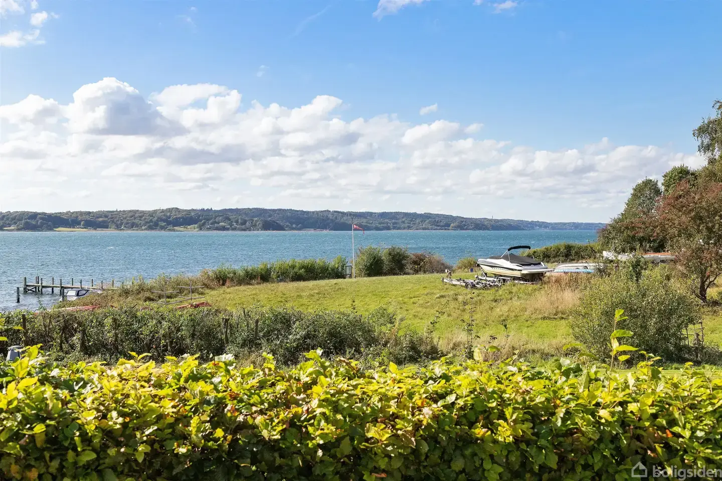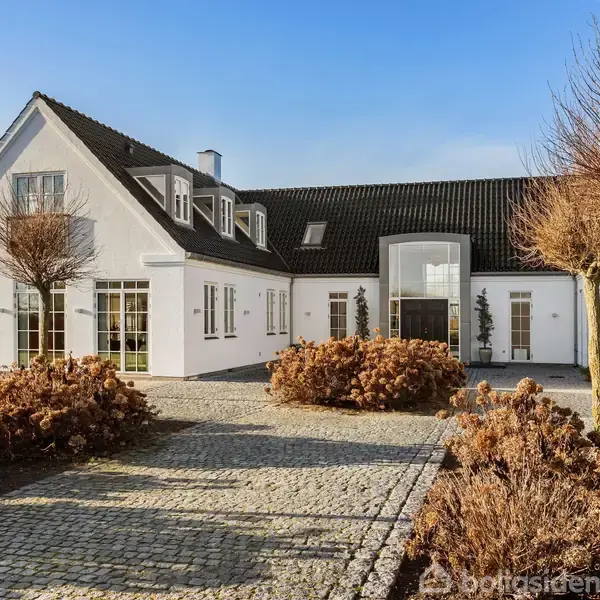 Den smukke villa på Strandvejen 32 ved Daugaard Strand, er ikke bare en bolig – det er et ægte fristed, kun et stenkast fra vandet, hvor naturen møder luksus og samler sig i en fantastisk helhed på over 500 etagemeter. Med en god planløsning og fokus på kvalitet og stil, som sjældent ses, tilbyder denne villa både sjæl og rum for den travle familie, der drømmer om noget mere. Her får du muligheden for at leve i et hjem, hvor hver dag nærmest føles som en ferie tæt ved vandet, og hvor både lys og luft strømmer gennem rummene – et sted, hvor man virkelig kan finde ro, men også plads til at leve livet i fulde drag. Det er, som om tiden står stille, når du står på din terrasse og ser ud over Vejle Fjord, hvor vandet skifter karakter med årstiderne. På vindstille dage ligger det spejlblankt, mens vinden puster liv i overfladen og danner skummende krusninger, når vejret raser. Hver dag byder på en ny skønhed – fra den rolige morgen, hvor fjorden reflekterer himlen, til de dramatiske nuancer af grå og blå under stormfulde eftermiddage, hvor vinden leger med trækronerne og tilføjer en beroligende rytme til landskabet. Opført i 2008 står denne fuldmurede villa som en stilfuld og tidløs perle, hvor moderne komfort og klassisk arkitektur går hånd i hånd. Den høje beliggenhed giver ikke kun en betagende udsigt til Vejle Fjord og den nærliggende natur, men skaber også en enestående atmosfære af majestætisk ro og fred. De sprossede vinduer, der pryder husets facade – flere af dem nyligt skiftet – spejler den klassiske byggestil, der samtidig udstråler en moderne elegance. Når du kører ind i den private indkørsel, mødes du af en port, der åbner op til en verden, hvor alt er gennemtænkt til perfektion. Fra det første skridt ind i huset, føler du straks, hvordan det hele hænger sammen. Den rummelige hall med sine travertingulve og høje lofter åbner op til hjemmets hjerte, hvor det store vinduesparti ovenover entredøren bringer sollyset ind og kaster en glød, der forener rummet på tværs af etagerne. Uanset om du står og kigger ud mod fjorden eller lader blikket glide over de smukke, hvide gipslofter, fyldt med små akustikfelter, er du konstant mindet om den overlegne kvalitet, der gennemsyrer hele huset. Dette er et hjem, hvor ingen detaljer er overladt til tilfældighederne, og hvor den samme sans for æstetik og funktionalitet gennemsyrer hvert rum – fra de smukt udformede badeværelser i travertin – hele tre styk - til den indbyggede pejs, der spreder varme og hygge i stuen. Med hele 24 terrassedøre i stueetagen og faktisk flere døre end vinduer, er huset gennemstrømmet af lys, og forbindelsen mellem inde og ude føles naturlig og ubesværet. Villaens mange etagemetre giver plads til, at den store familie kan trives, men også til den, der søger mere – måske et hjemmekontor, hvor den fantastiske udsigt til fjorden kan være din daglige inspiration. Den store parklignende have på 8835 m² er et kapitel for sig, hvor du kan lade børns latter fylde luften, mens de løber rundt på den enorme græsplæne, eller du kan arrangere de store havefester, der næsten får solen til at skinne endnu stærkere, mens du og dine gæster nyder den bløde brise fra fjorden. Det er et sted, der ikke bare indbyder til afslapning, men også giver plads til at være kreativ og leve livet med den frihed, som kun en sådan beliggenhed kan give. For dem, der elsker at komme tættere på naturen, er der mulighed for at have en kajak eller lille båd liggende helt nede ved fjorden eller tage en dukkert i vandet, eller måske blot sejle ud og lade tankerne flyve. Her har du naturen på én side og det veludførte hjem på den anden, og alt er skabt til at sikre den perfekte balance. Her er lysindfaldet fantastisk hele dagen, og den store terrasse, der vender mod fjorden, tilbyder et privat, fredfyldt sted at være – uanset om det er en sommeraften, hvor duggen falder, eller en tidlig morgen med en kop kaffe og udsigt til den glitrende fjord. Det er et hjem, der giver dig plads til at være dig selv – et sted, hvor alt hænger sammen, og hvor kvalitet og natur forenes i én uforlignelig helhed. Velkommen ind i en usædvanlig smuk liebhaverejendom! Velkommen ind Når du træder ind ad den brede, sorte hoveddør, åbner en imponerende hall sig foran dig. Den rummelige entré, med sine travertingulve og højt til loftet, byder dig velkommen med et elegant og stilfuldt udtryk. Fra første skridt mærker du den følelse af lys og åbenhed, der gennemstrømmer boligen. Store vinduer i hallen fanger lyset og trækker udsigten til fjorden ind i rummet, mens den smukke arkitektur giver en følelse af både raffinement og ro. Hallen leder dig videre ind i hjemmets hjerte, hvor hvert rum naturligt forbinder sig med det næste. For dem, der ønsker at komme tørskoet ind, giver garagen direkte adgang til huset og fører dig til en praktisk gang, der fører videre til værelsesafdelingen og bryggerset. Denne funktionelle indgang er ideel for familier, der ønsker let adgang til hjemmet, samtidig med at elegancen i hovedentréen er en indbydende ankomst. Leverummene Husets opholdsrum er designet med fokus på at skabe en følelse af rummelighed og sammenhæng, hvor både lys og luft spiller en central rolle. Den store stue, som ligger i åben forbindelse med køkkenalrummet, er et naturligt samlingspunkt for både afslapning og sociale stunder. De brede Dinesen plankegulve strækker sig gennem rummet og skaber en elegant enhed, der forener de forskellige områder. Stuen er omgivet af store glaspartier, som giver en imponerende udsigt til Vejle Fjord og de grønne omgivelser, samtidig med at de slipper masser af naturligt lys ind. Her kan du både nyde den varme hygge foran pejsen på en kold vinterdag, eller åbne en af de mange terrassedøre op på vid gab og lade den friske fjordluft strømme ind på de varme sommerdage. På førstesalen findes et mere priv