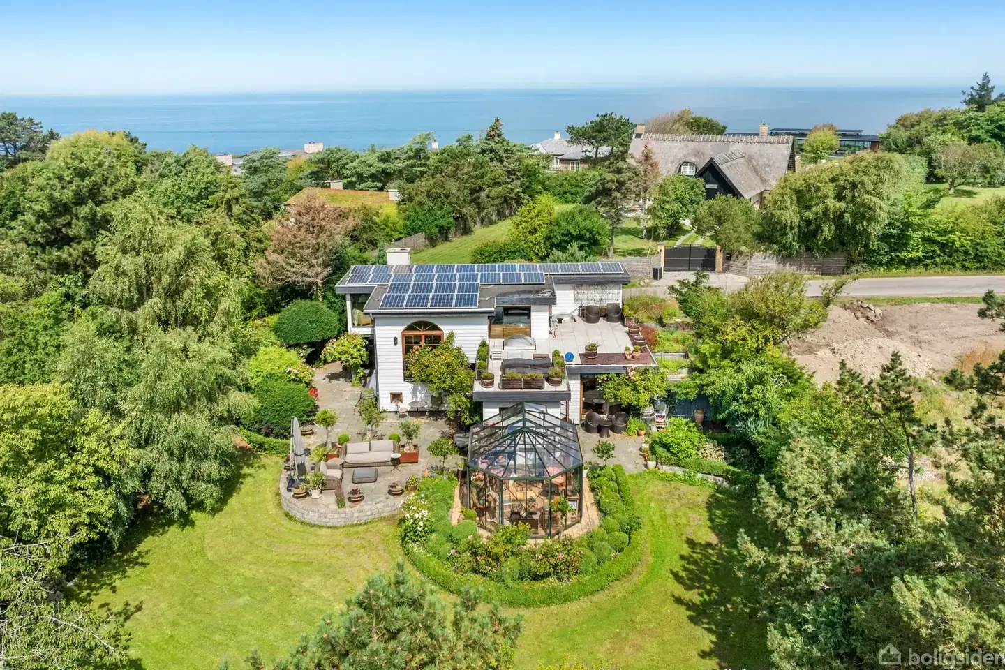 Sommerhuset på Strandvejen 38 med det stejleste, det smukkeste og mest fotograferede blomstertag i hele byen, er godt nok noget særligt, som enhver utraditionel, kreativ sjæl vil værdsætte. Bygget i 1972, ombygget i 2010, hvor 5 niveauer er tryllet sammen til et stort flow på tværs, hvor de horisontale kvadratmeter går op i en højere enhed med de vertikale. Hvert niveau udgør hver sit univers, sin funktion. Og inde i haven er heller intet overladt til tilfældighederne. På mange måder en klassisk, gammel have, med stedsegrønne nåletræer og rododendronbuske langs skellene. En overflod af roser og buksbom – her og der budt op til dans af lavendelfarvede storkenæb. Også her en mangfoldighed af rum. Rundt hvert hjørne et nyt univers. Alligevel en ro, en helhed, holdt sammen af orangeriet, som kernen mellem hus og have. Her opleves magiske stunder, når solens sidste stråler rammer bænken i den forsænkede rosenhave nederst i hjørnet, eller når vinden helt har lagt sig og den blide lyd af bølger, der skvulper mod strandkanten, bliver båret op gennem slugten. Ja, vi er på bakketoppen med den lille hvide mur, hvor de lyserøde roser titter nysgerrigt op over de røde teglsten, og hvor rododendronbuskene generøst falder ned ad bakken mod slugten, til skræntstien mod den flotte nye trappe til badestrandene. Men Strandvejen fortsætter jo op til den næste bakketop, hvor vi værdigt bliver mødt af det fine, gamle Helenekilde Badehotel på vores vej mod stationen og Lejet. Ikke for ingenting giver Tisvildes fortræffeligheder genlyd over det ganske land. Det gamle fiskerleje er i sandhed blevet transformeret til et eksklusivt mekka for alle slags oplevelser. Cafeer og restauranter, gallerier, biograf og jazzklub og et utal af sociale møder både sommer og vinter. Men allervigtigst, Tisvildes ganske særlige møde mellem skov og strand.