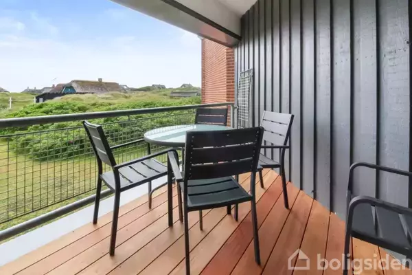 Ferielejligheden på Strandvejen 52 ligger i Fanø Bad, som med rette er det mest populære ferieområde på hele Fanø. Her finder I en fantastisk badestrand, gode spisesteder og ikke mindst en skøn natur ved Melbjerg Plantage. Lejligheden fik en totalrenovering i 2020 og fremstår nu særdeles flot. Velkommen til. I skal ikke bruge jeres dyrebare ferietid på at holde en have. I stedet kan I indtage den overdækkede altan, der ligger perfekt i læ fra selve bygningen og med en naturskøn udsigt. Her kan