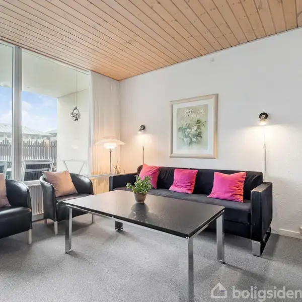 Nu venter denne flotte og velindrettede ferielejlighed i Feriecenter Vesterhavet på en ny heldig ejer. Her kan du holde ferie uden at bekymre dig om vedligehold, samtidig kan du mærke feriestemningen med stranden og golfbanen lige udenfor døren – her summer af liv. I lejligheden finder du entré med plads til overtøjet, 2 soveværelser med skabsplads samt badeværelse med gulvvarme. Endvidere byder lejligheden på det store opholdsrum, som indeholder flot køkken, og det er i åben forbindelse til spiseplads og sofagruppen. For enden er der et stort vinduesparti med udgang til den overdækkende sydvestvendte terrasse, hvor der er særdeles god plads, så du kan nemt invitere gæster forbi. I Feriecenteret Vesterhavet er der gode parkeringsforhold, cykelkælder samt vaskerum. Samtidig har du masser af aktiviteter, her er nemlig udendørs- og indendørsswimmingpool, sauna, legepladser, grillplads og aktivitetsrum - alt sammen lige udenfor døren. Lejligheden er tilmeldt udlejning. Skal du også opleve den velindrettede ferielejlighed? – så kontakt os allerede i dag på 76 66 01 02.