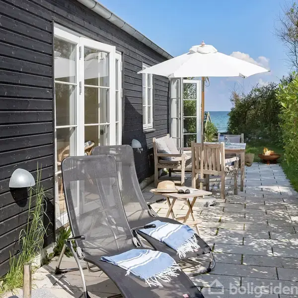 Åbent hus med tilmeldingskrav 11/2 - klik på billede - Dette unikke fristed har en yderst attraktiv beliggenhed på Strandvejen 63 i Ballen, med direkte adgang til havet og en af øens gode badestrande. Samtidig er du kun få hundrede meter til den populære og livlige lystbådehavn Ballen, som tilbyder et væld af oplevelser. Her finder du hyggelige caféer, restauranter, butikker og en havn med et charmerende maritime miljø. Huset blev ombygget og totalrenoveret i 2020 og fremstår i dag som et lyst og lækkert fristed, opført i gode materialer og med gulvvarme i alle rum i hele huset, der kan styres via app. Indretningen er gennemtænkt med fokus på komfort og udsigt, og de store vinduespartier og loft til kip skaber en luftig og indbydende atmosfære i husets samlingspunkt – køkken-alrummet. Fra køkken-alrummet er der direkte adgang til den sydvendte terrasse med havudsigt og læ. Det er det perfekte sted at nyde morgenkaffen, måltider eller bare den ro, som Samsø byder på. I stuen kan du tilbringe timer med at kigge ud over havet, eller du kan slappe af i det hyggelige sofahjørne. Soveværelset er lyst og rummeligt, og har både god opbevaringsplads og direkte udgang til terrassen, så du kan vågne op til lyden af bølgerne og solopgangen. Huset har desuden to flotte badeværelser – det ene med havudsigt fra bruseren og det andet med adgang udefra, ideelt efter en tur på stranden. Begge badeværelser er stilfuldt indrettet med fokus på komfort og funktion. På begge sider af badeværelset finder du to identiske værelser, som også har adgang udefra. Udenfor er grunden afskærmet og privat, så du kan nyde de gode og lange sommerdage. Fra terrassen er der direkte adgang til stranden via en lille sti, og på et privat plateau ved stranden kan du altid sætte dig og nyde den fantastiske udsigt over havet. Ved vejen findes både parkeringsplads og el-ladestander. Derudover findes et praktisk udhus på grunden, opført i 2021 Med den fantastiske beliggenhed tæt på både havet og de lokale oplevelser, er Strandvejen 63 det perfekte sommerhus for dem, der ønsker at kombinere ro og privatliv med nærhed til Samsøs smukkeste strande og livlige Ballen. Huset udlejes via Feriepartner Samsø og man skal respektere de allerede indgået aftaler, kontakt mægler for yderlig information.