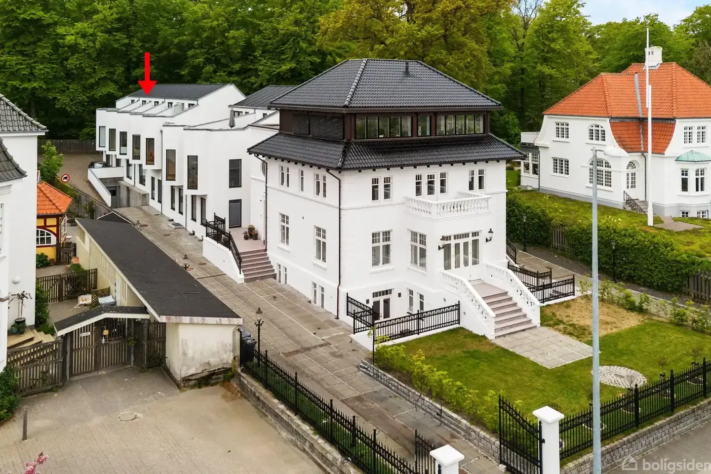 De statelige ejendomme langs denne del af Strandvejen udgør et ekstraordinært villakvarter, hvor de fleste af grundene blev udstykket af kommunen omkring år 1900. Derefter skød de prægtige boliger op på stribe. Beliggenheden med frit udsyn til vandet og skoven i baghaven har gjort det til et særligt attraktivt sted at bo – dengang som nu. Denne rummelige lejlighed på 117 m² byder på fire værelser og en gennemtænkt planløsning, der kombinerer stil, funktionalitet og komfort. Hjertet i boligen er