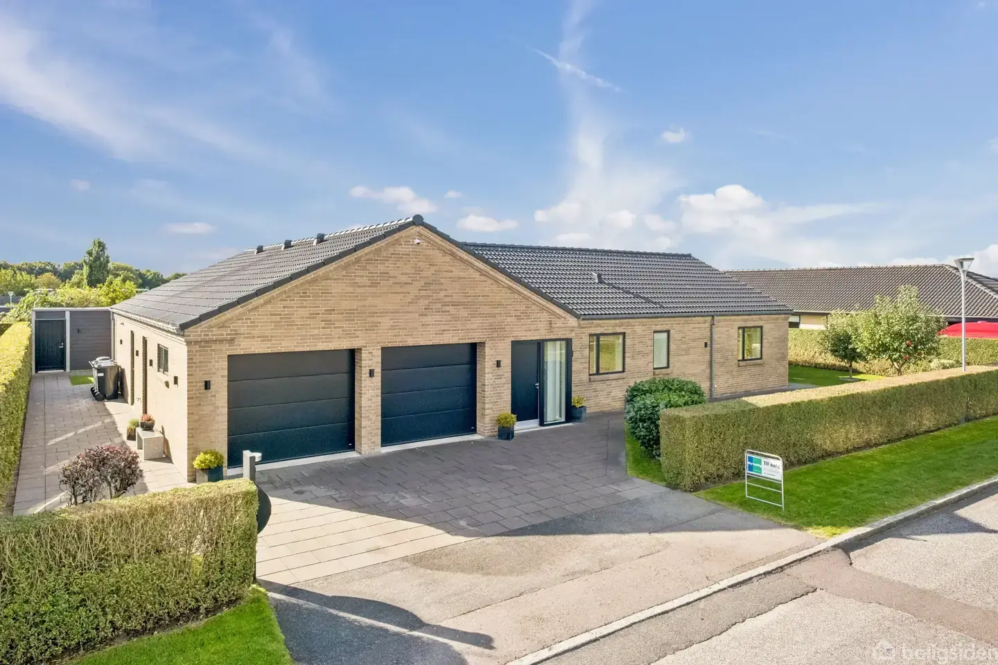 En god beliggenhed kommer til at danne rammen om tilværelsen. Et trygt område tæt på naturen, fritidsaktiviteter og alt, hvad I skal bruge. Her, på en blind vej, står etplansvillaen flot og fyldt med smarte løsninger, en masse plads og et udemiljø, der er nemt at holde og utrolig solrigt. Inden døre strækker 168 kvm sig ud over ét plan – plus en dobbelt integreret garage på 46 kvm. Dertil kommer et rummeligt og godt udnyttet loftsrum, der er fuldisoleret, frostfrit og egner sig perfekt til opbe