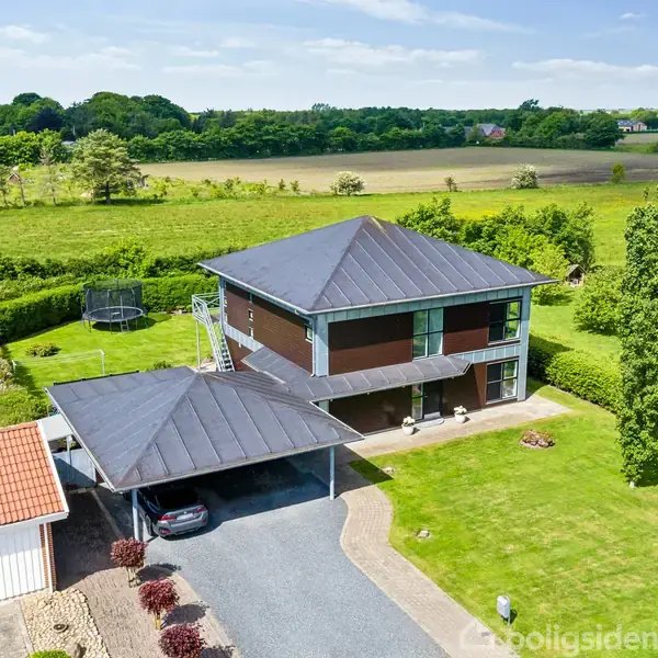 Velkommen til Strengevej 10 – en gennemført og stilren villa med et imponerende boligareal på 220 m², opført i 2004 og placeret i et fredeligt og eftertragtet kvarter i Lustrup, kun få minutter fra Ribe. Her forenes moderne arkitektur, funktionel indretning og eksklusivt materialevalg i en sjældent udbudt bolig. Villaens elegante bungalowstil skaber en helt særlig atmosfære med luftige rum, markante linjer og store vinduespartier, der inviterer naturen indenfor. Huset er velplaceret på grunden