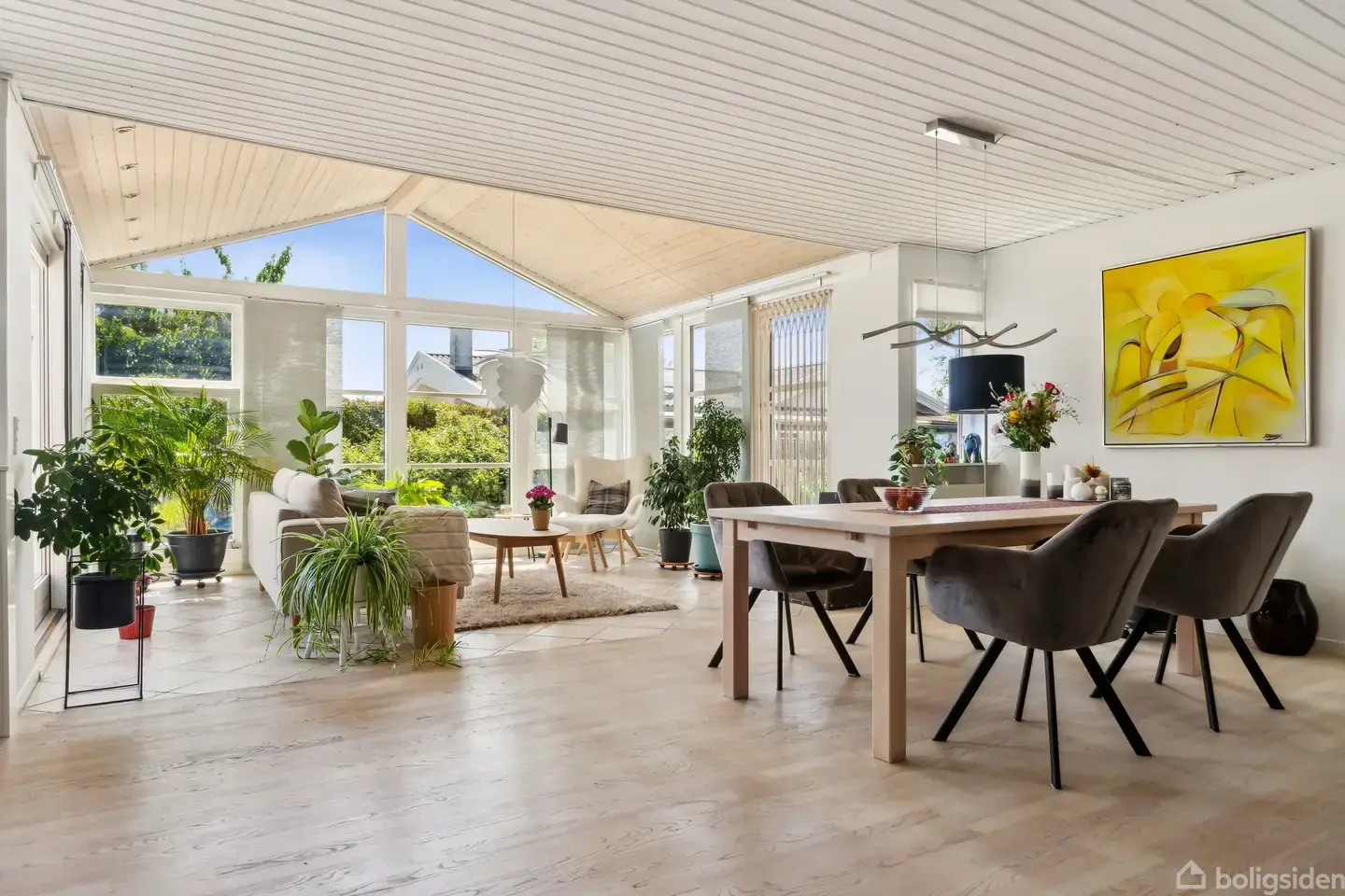 Denne veldisponerede villa på 151 m² fra 1971, renoveret i 2005, fremstår med en gennemtænkt planløsning og gode, funktionelle rum. Boligen byder på to stuer, hvoraf den ene er en stor, central opholdsstue med højt til loftet og et flot lysindfald fra brede vinduespartier mod haven. Her er der god plads til både spiseafdeling og sofaarrangement, og rummet fungerer som husets naturlige samlingspunkt. Den anden stue egner sig ideelt som tv-stue, opholdsrum eller eventuelt ekstra værelse efter beho