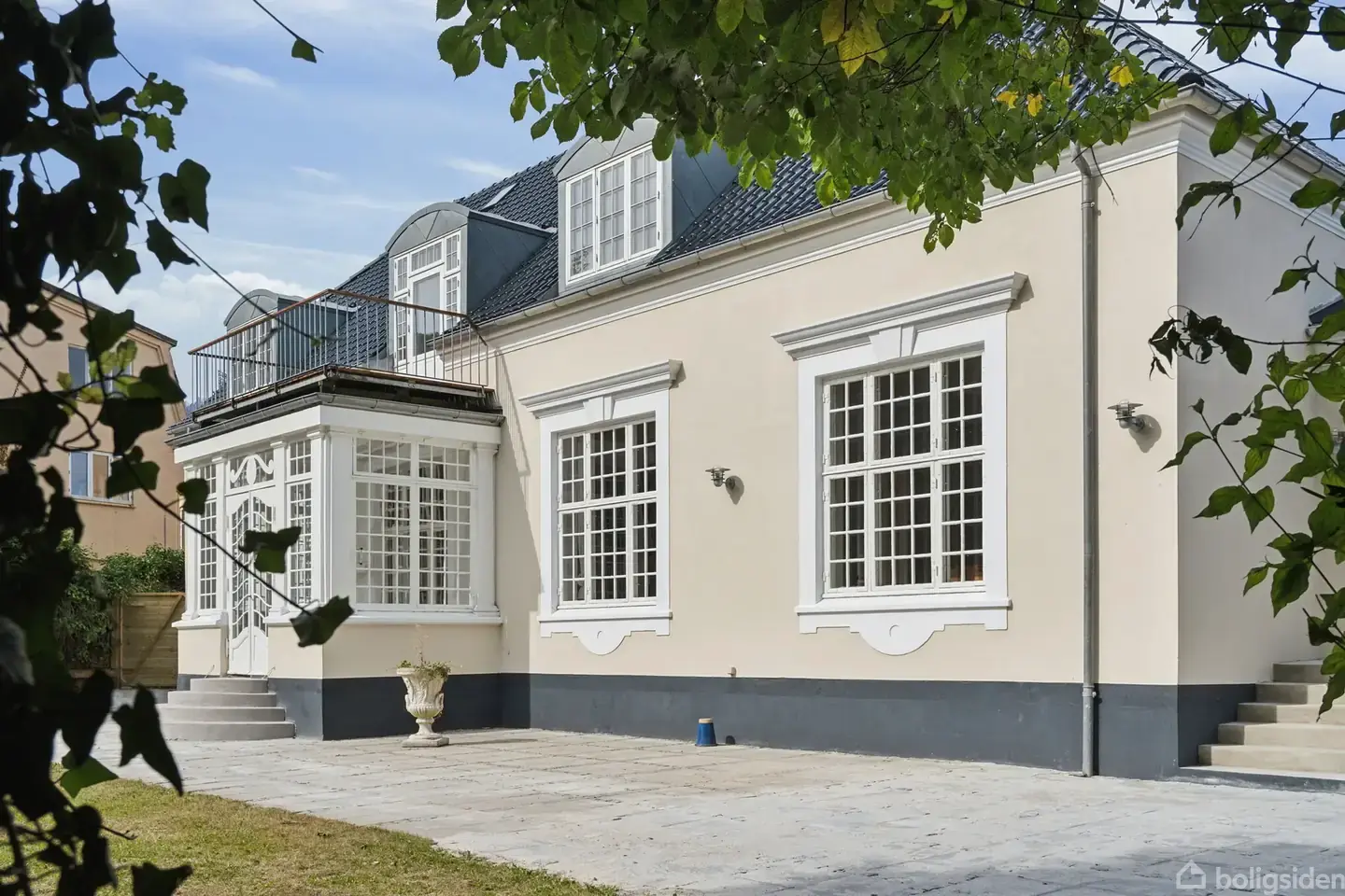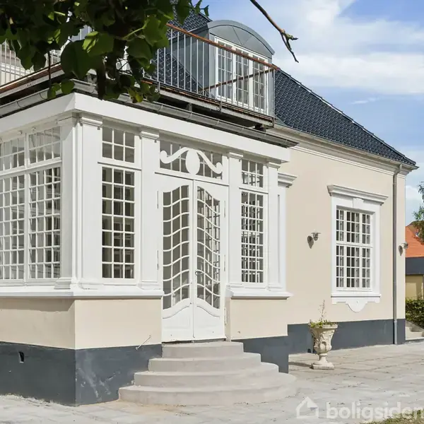 Kan du mærke det? Det er historiens vingesus og blafrende sommerfugle i maven, du mærker, når du står med nøglerne til denne ekstravagante palæejendom i hjertet af Maribo. Detaljerne står i kø for at blive oplevet, når dørene åbnes til denne unikke sag i fire plan med herskabelig elegance fra allerøverste hylde. Højt til loftet og godt, gammeldags håndværk Kedeligt bliver det aldrig, når man bevæger sig rundt. Der er altid noget smukt at dvæle ved; om det er det fine trappeforløb, de franske, hvælvede døre ud til haven, de levende farver i entréens runde vindue eller de flotte fyldningspaneler i stuen. Samtidig er hjemmet tydeligt moderniseret, så du rykker livet ind i tidssvarende rammer. Ejendommen gemmer bl.a. på et samtalekøkken, hvor æstetisk fletparket binder rummet sammen med tre meget, meget flotte stuer, og videre finder du to store badeværelser, endnu et opholdsrum på førstesalen og i alt fire dejlige værelser. Endelig har man udnyttet loftsetagen, så du får glæde af endnu et stort, lyst rum, mens kælderetagen ligeledes byder på god “ekstraplads” til det, der giver dig værdi – måske er det en vinkælder, et værksted, et fitnessrum eller noget ganske fjerde. Privatliv og et friskt pust udenfor Her skal være plads til kvalitetstid, og det er der også i den integrerede havestue, på terrassens smukke rådhusbelægning og i det hele taget i haven, som er nem at holde. Høje træer gemmer dig væk fra civilisationen, og bevæger du dig op på balkonen, hæver udsigten sig tilsvarende op mod de gamle, grønne trækroner – hvilket bedre sted at indtage kaffen end netop her? ##Maribo har en unik købstadsstemning over sig, og det fornemmer man så absolut allerede ved hoveddøren. Følg de gamle byhuse rundt om hjørnet, og vupti – så står du på Maribo Torv ved det gamle rådhus. Kort sagt har du kun få minutters gang til alt fra indkøb til hyggelige frokoster og selvfølgelig stationen, når først du udfolder livet her. Hvem er boligen til? - Familien og livsnyderne, der ikke vil lade sig nøje - De kvalitetsbevidste købere, som værdsætter klassisk håndværk - Bymenneskene – du træder direkte fra hjem ud i byens centrum Tænk at man kan bo så centralt, så privat og så elegant. Det her er et stykke lokalhistorie med plads til store armbevægelser, gæstfrihed og måske endda også erhverv. Det hele begynder med en fremvisning.