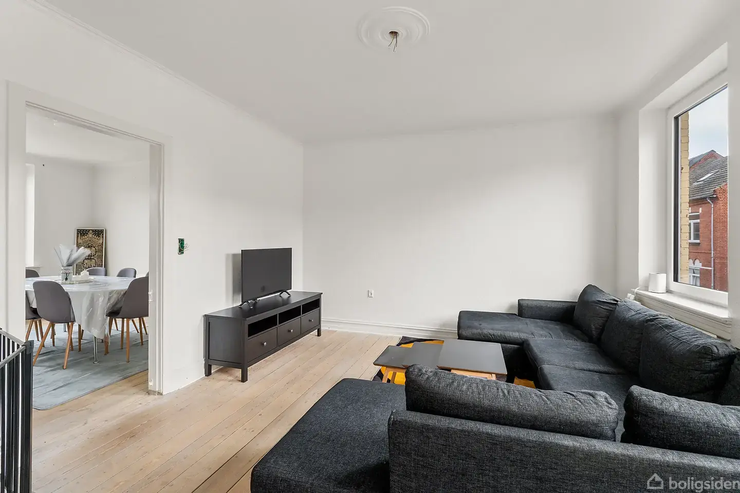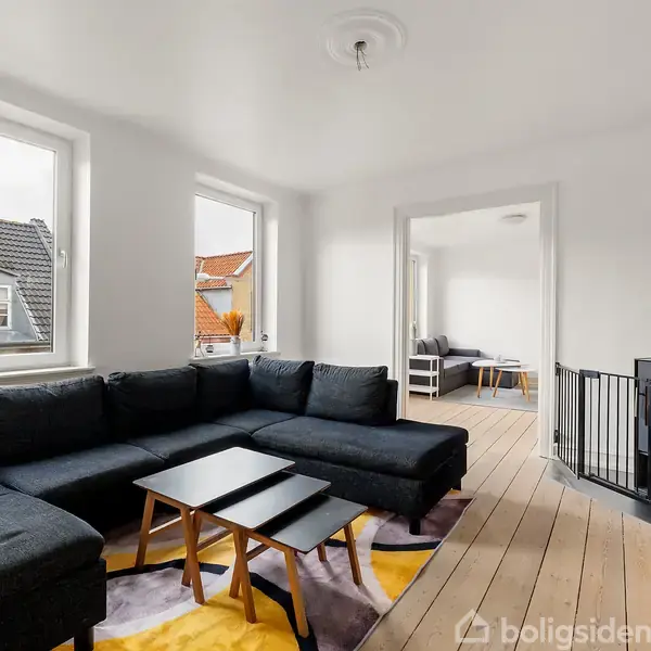 .Drømmer du om at bo tæt på strand og natur, samtidig med at du har byens faciliteter inden for rækkevidde? Så er Suhrsvej 13 den perfekte bolig for dig. Denne lyse og rummelige lejlighed i to plan byder på en fantastisk kombination af moderne komfort og idyllisk beliggenhed. Første sal består af et rummeligt køkken-alrum og 3 lyse stuer, heraf den ene med brændeovn, som danner rammerne for hyggelige stunder med familie og venner. På anden sal finder du to soveværelser, et kammer og et badeværel