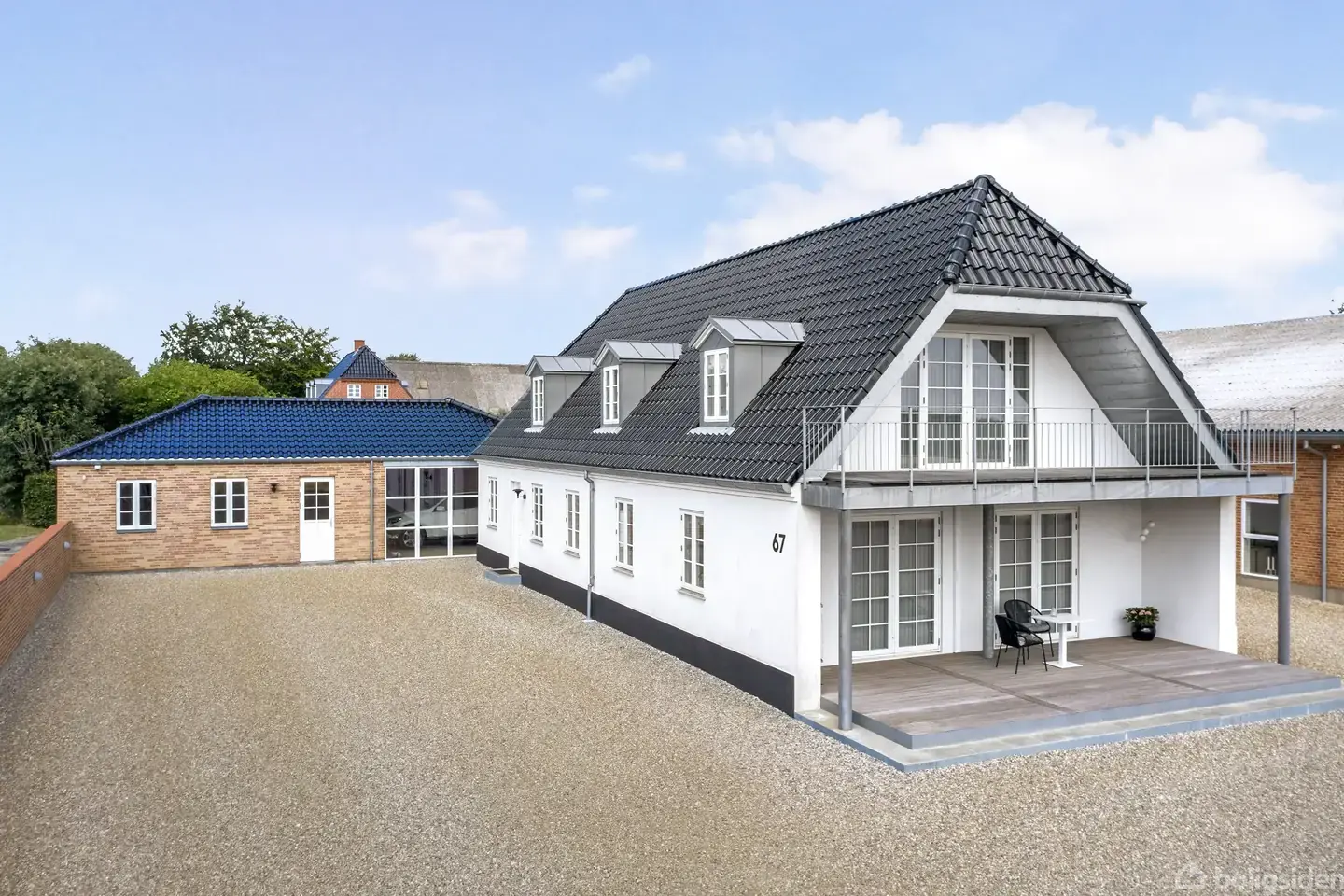 En topmoderne og rummelig bolig, store, højloftede haller med alskens anvendelsesmuligheder og en særdeles synlig beliggenhed med mange forbipasserende - I får hele pakken her Sundbrovej 67 på Tåsinge. Ejendommen har indtil nu været anvendt som smedje/maskinhal, og der har endvidere været frisørsalon på førstesalen af den ene hal. Takket være den gode beliggenhed er her mulighed for næsten hvad som helst, og den næsten fem hektar store grund gør tilmed hestehold til en mulighed. Velkommen til!Be