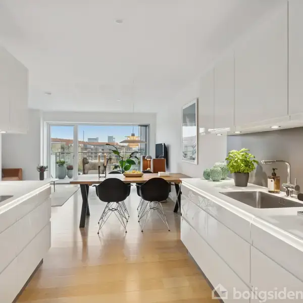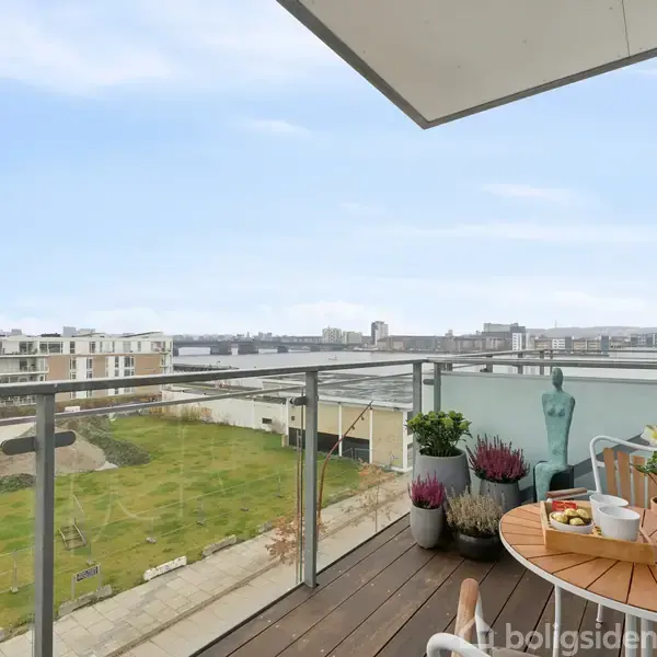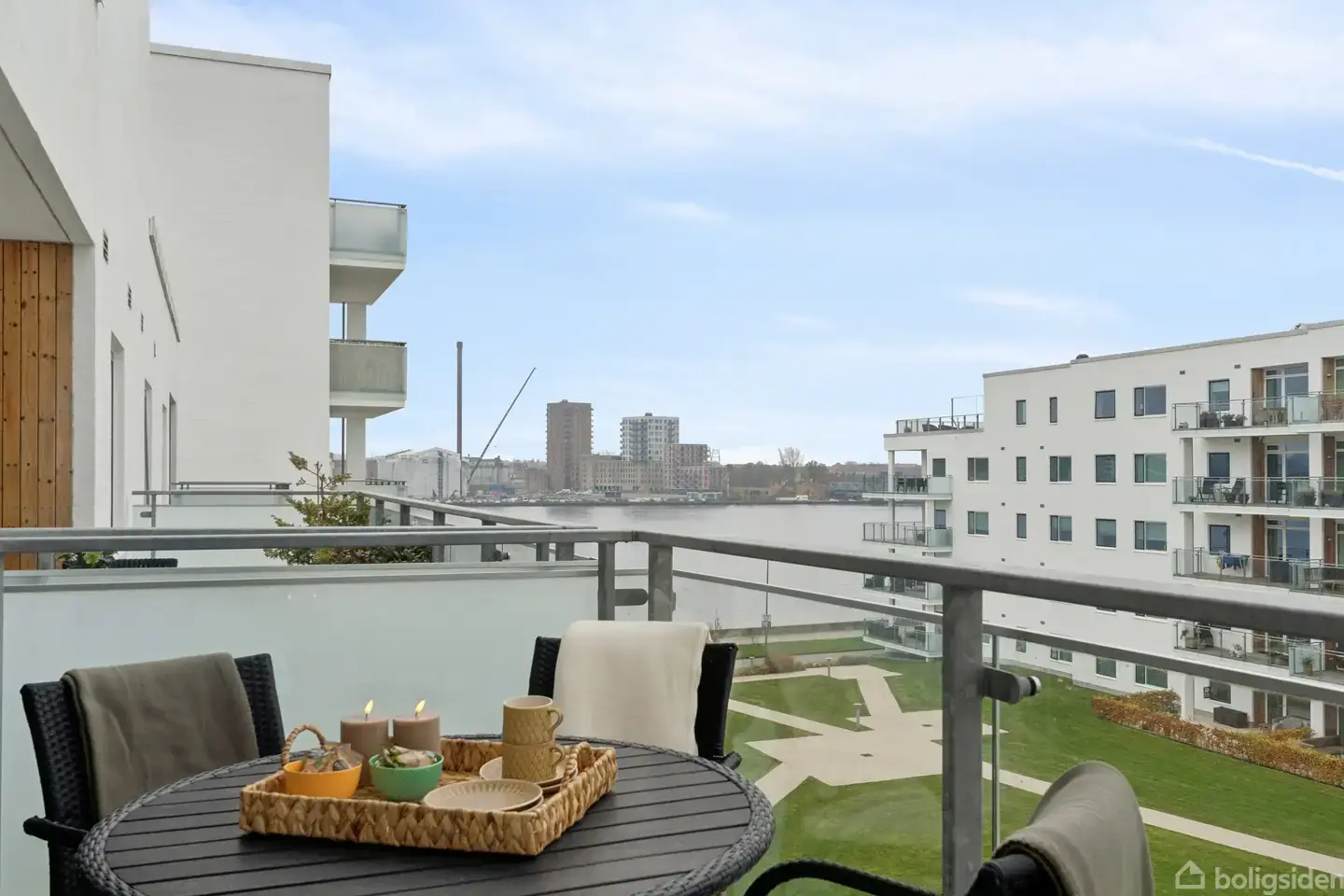 Velkommen til denne lyse og moderne 2-værelses lejlighed på hele 79 kvadratmeter, beliggende på 3. sal i et attraktivt byggeri fra 2017 – lige ved vandkanten i det eftertragtede Sundby Brygge. Her får du en indflytningsklar bolig med gennemtænkte løsninger, kvalitetsmaterialer og en helt fantastisk udsigt over Limfjorden, Limfjordsbroen og Kulturbroen.Lejligheden byder på en stor og indbydende opholdsstue i åben forbindelse med et stilrent HTH-køkken, der indbyder til både madlavning og samvær.