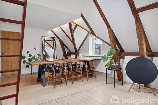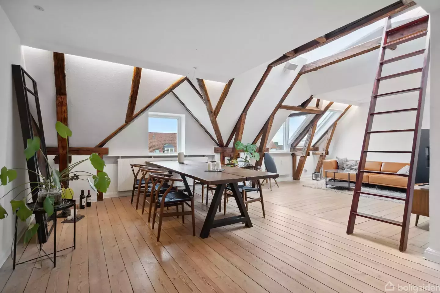 PENTHOUSELEJLIGHED MED UDSIGT TIL VANDI hjertet af Horsens by udbyder vi nu en unik penthouselejlighed på hele 110 m2 + altan med udsigt udover Horsens Fjord. Lejligheden ligger i en velholdt ejendom fra 1902 og har den helt rigtige charmerende stil. Her er synlige spær, kviste og gamle plankegulve - lejligheden fremstår i moderne og indflytningsklar stand men med respekt for ejendommens karakter, hvor de oprindelige detaljer er bevaret. Det er også værd at nævne, at de fleste vinduer i ejendomm