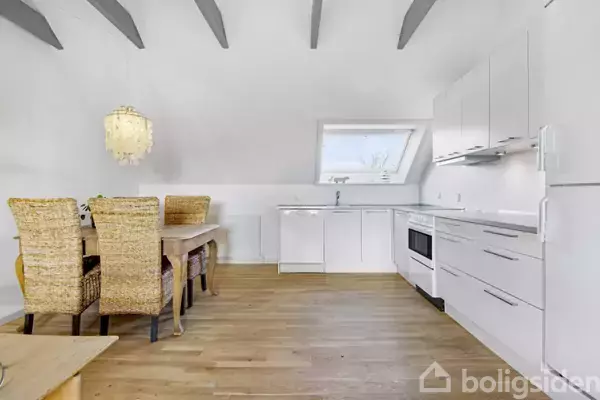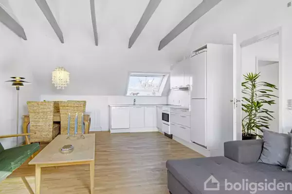 Med loft ført mod kip.Øverst oppe i ejendommen ligger denne fireværelses lejlighed, som virkelig imponerer. Bag ruderne er der den flotteste udsigt over Aalborg, alt imens selve lejligheden med loft ført mod kip giver en helt fantastisk rummelighed for både familier, venner og par, der drømmer om at starte en ny tilværelse i Hasseris. Rolig adresse tæt på det hele.Når man faktisk bare skal over på den anden side af Svalegårdsvej for at nå de smukke arealer omkring Kridtgraven, er det fra starten