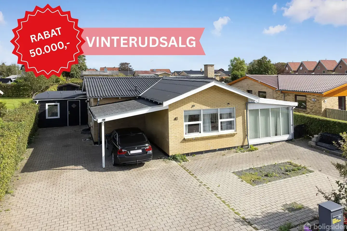 Åbent hus med tilmeldingskrav 4/2 - klik på billede - Er I på udkig efter en nydelig og indflytningsklar etplansvilla, hvor der er et minimum af vedligehold og nem adgang til alle hverdagens fornødenheder? Så er huset her! Velkommen til Svalevej 41, hvor I får en god og central placering i det populære pip-kvarter, hvor alle byens faciliteter er tæt på. Indenfor bare en kilometer er der gågade, indkøb, spisesteder og en masse kulturelle arrangementer året rundt. ”Lige rundt om hjørnet” finder I også Dueholmskolen, uddannelsesmuligheder, Multipark, teater, sport og meget mere. Den fine villa fra 1963 er opført i gule sten med eternittag. Til-/ombygget i 1983. Huset rummer 119 velindrettede m2 i 1 plan, hvoraf de 13 m2 er en indbygget udestue. Derudover får man 57 bonus-m2 i en tilbygning, der er indrettet med to disponible rum, som er i boligstandard. Denne del af huset giver jer mange anvendelsesmuligheder. Hvad en I har behov for gæsterum, hjemmekontor, legeværelse, ”krea”-rum eller andet – ja, kun fantasien sætter grænser. er løbende renoveret i kvalitetsmaterialer og står i dag fuldstændig indflytningsklart. I forlængelse af huset finder man i øvrigt en carport på 13 m2. Indretning: Rummelig og lys entré, som fordeler sig til det ene værelse samt husets super flotte, lyse badeværelse med nyere, hvidt skabsarrangement og muret bruseniche. Derudover får man adgang til det fine køkken med flot, hvidt inventar, som ligger i åben forbindelse med husets store stue. En virkelig skøn og hyggelig stue med dejligt lysindfald med en fin størrelse, som kan indrettes med både spisearrangement, sofagruppe, hyggekroge, m.v. I åben forbindelse med stuen er der en skøn udestue, som er bygget til med store vinduespartier, så man får et skønt lysindfald fra haven, der føres videre ind i huset. Herfra er der direkte udgang til haven og terrassemiljøerne. Et dejligt opholdsrum, hvor I har mange hyggelige stunder i vente. Fra stuen er adgang til endnu et dejligt soveværelse med skabe. Huset rummer yderligere tre disponible rum, hvoraf to er brugt som soverum, derudover baggang samt bryggers, der har en god størrelse med plads til vaskefaciliteter, fryser, m.v. og hvor I kan stille en masse ting fra Jer i det daglige og lukke døren, uden at skulle have gæster igennem. Foran huset er der flisebelagt indkørsel og et dejligt flisebelagt terrasseområde, hvor man kan nyde aftensolen. Bag huset er endnu en flisebelagt terrasse, hvor I kan nyde privatlivet og fritiden fuldt ud. Her får I en privat og ugeneret have, så I kan trække Jer tilbage og nyde privatlivet. I haven er også et legehus på 9 m2 og et drivhus på 9 m2, så her er noget for alle aldre. Størstedelen af haven er udlagt i græsplæne – altså alt i alt en skøn grund med plads til hele familien. En virkelig dejlig, nem og indflytningsklar etplansvilla tæt på alt, der giver jer nogle fantastiske rammer. Vi glæder os meget til at vise jer dette skønne sted!