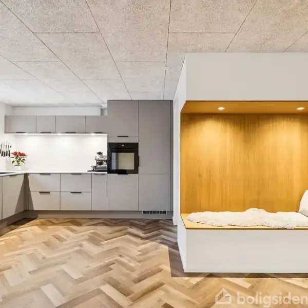 På en lukket og rolig villavej i attraktive Tørring finder du denne fantastisk totalrenoverede villa, hvor stil, funktionalitet og natur går op i en højere enhed. Her får du en sjælden kombination af moderne komfort og en helt særlig beliggenhed med have direkte ned til skovstykke – perfekt til både familieliv og afslapning. Villaen byder på tre gode værelser, ét badeværelse samt et ekstra toilet, hvilket giver god plads og fleksibilitet i hverdagen. Boligens naturlige samlingspunkt er det imponerende og stilfulde køkken-alrum med spisestue og stue i åben forlængelse. Her understreges kvaliteten af de smukke sildebensgulve, som giver boligen et eksklusivt og tidløst udtryk. Køkkenet er rummeligt og veldisponeret – med en hyggelig alkove, der indbyder til lektielæsning, kaffepauser eller afslapning. Fra stuen er der et betagende kig gennem de store vinduespartier ud mod terrassen, haven og skoven for enden af grunden – et udsyn, der skifter smukt med årstiderne og giver en helt særlig ro. Den sydvendte terrasse er både solrig og delvist overdækket og ligger let hævet over haven, så du får et skønt overblik og optimale rammer for udeliv, grillmiddage og lange sommeraftener. Haven er ugeneret og naturnær – ideel til både leg og afslapning. Derudover får du et praktisk bryggers med direkte adgang fra bagdøren ved carporten – perfekt til familiens travle hverdag. Villaen fremstår som en gennemført bolig, der er lige til at flytte ind i, hvor intet er overladt til tilfældighederne. Beliggenheden i Tørring er særdeles attraktiv med kort afstand til børneinstitutioner, skole, indkøb og fritidsfaciliteter. Tørring byder på et aktivt lokalsamfund, gode idrætstilbud, naturskønne omgivelser samt nem adgang til både Horsens, Vejle og motorvejsnettet – ideelt for pendlere. En sjældent udbudt villa for dig, der ønsker kvalitet, ro og natur – uden at gå på kompromis med hverdagens bekvemmeligheder. Boligbutikkerne Vejle & Jelling kan hjælpe dig med finansieringen af din nye bolig. Kontakt os, og lad os guide dig igennem hele processen.