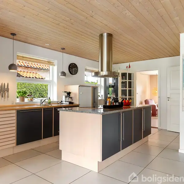Pæn og velindrettet villa med skøn have i Rønne I bydes velkommen til en villa, der er både pæn, velholdt og lige til at gå til for både børnefamilien og parret. Hjemmet fordeler sig på tre veldisponerede plan: stueplan, førstesal og kælder. Hoveddøren åbner op til stueplanet, og her er der adgang til en rummelig stue, et stemningsfuldt originalt badeværelse samt et køkken, som er i åben forbindelse med et udsøgt alrum. Øverst venter et nyt badeværelse samt tre hyggelige værelser og en repos