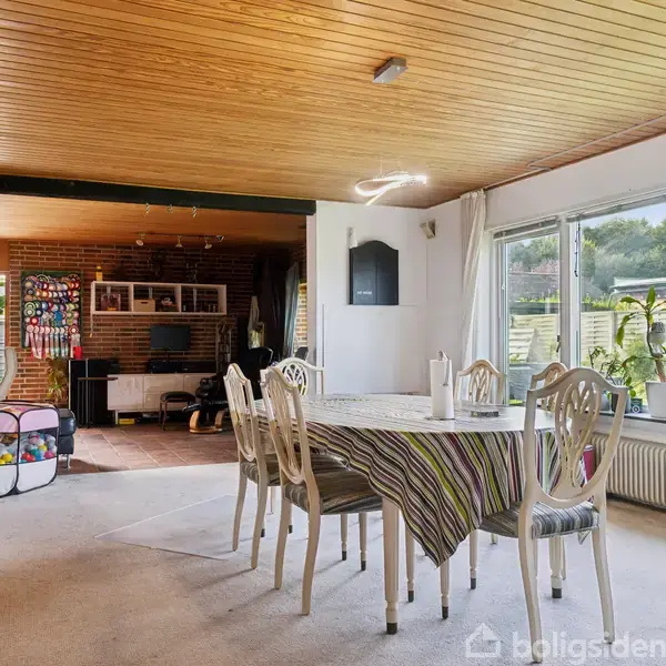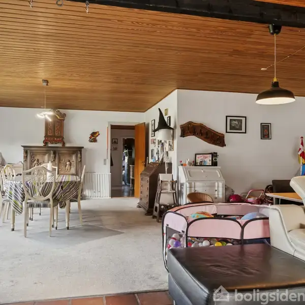 FAMILIEVENLIG VILLA MED STOR TERRASSE OG EN GOD PLANLØSNINGVelkommen til denne indbydende og funktionelle bolig på 152 m2. Denne villa er perfekt til børnefamilien eller parret, der ønsker god plads og en gennemtænkt indretning. Her får I en planløsning, der binder boligen naturligt sammen – med lyse opholdsrum, tre gode værelser og masser af udemiljø.Når du træder ind i boligen, bliver du mødt af en praktisk entré, som giver adgang til både bryggers, badeværelse og værelsesafdelingen. Her finde
