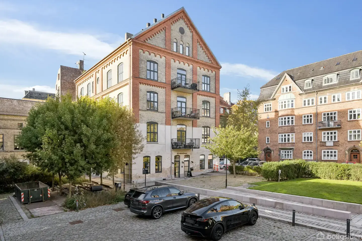 Velkommen til en sjælden liebhaverbolig på hele 166 m² – beliggende i en af Frederiksbergs mest karakterfulde ejendomme fra 1891. Her får du en boligoplevelse ud over det sædvanlige, hvor klassisk arkitektur møder moderne komfort i et gennemført New Yorker-inspireret udtryk.Allerede ved ankomsten mærker du noget særligt: Den store elevator bringer dig bekvemt direkte til entréen, og idet døren åbnes, mødes du af en imponerende rumfornemmelse. Med næsten 3,5 meter til loftet og store vinduesparti