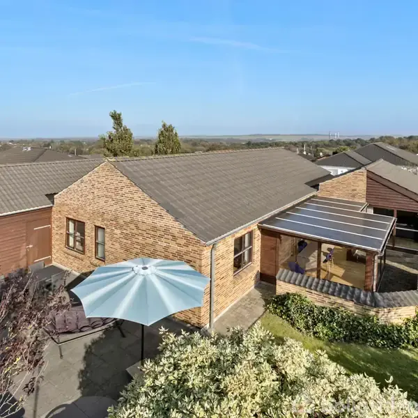 Åbent hus med tilmeldingskrav 1/2 - klik på billede - Dette skønne hus på Svenstruphøj 21 er ideelt til børnefamilien, der ønsker at bo centralt, i et funktionelt og kvalitetsbyggeri, som kræver minimal vedligeholdelse. Huset er et Helle-hus fra 2001, hvilket betyder høj kvalitet og gennemtænkt funktionalitet, og med dets 143 kvm bolig og 17 kvm udestue er pladsen udnyttet optimalt til en nem indretning. Boligen ligger lige ved et stort grønt fællesareal og har en nyere, stor vestvendt terrasse, hvor de lune sommeraftener kan nydes til fulde. Fra huset er der adgang til et veludviklet stisystem, som giver børnene en sikker vej til både skoler og børnehaver, og der er kort afstand til sportsfaciliteter og fritidsaktiviteter i området. Inde i huset byder planløsningen på en rummelig entré med god plads til både overtøj og sko. Det store og lyse køkkenalrum indbyder til hygge og fælles madlavning, mens den tilstødende, isolerede udestue forlænger sommeren og giver et ekstra opholdsområde året rundt. Derudover finder du et praktisk bryggers med masser af opbevaringsplads, en lys og indbydende stue, et forældre-soveværelse med skabsvæg og eget badeværelse, samt en værelsesafdeling med tre rummelige værelser og et ekstra badeværelse med bruseniche. Haven er velanlagt, solrig og rummer flere hyggelige terrasseområder. Derudover er der en 48 kvm stor dobbelt carport med et fuldisoleret depotrum – alt sammen gør hverdagen nem og bekvem for hele familien. Beliggenheden er virkelig en af boligens store fordele. Skolen, daginstitutionerne og indkøbsmulighederne er i kort afstand, ligesom du hurtigt når motorvejen og skoven, der ligger lige om hjørnet. Der er også gode muligheder for offentlig transport, og kvarteret er kendt for sin dejlige, familievenlige atmosfære. City Syd med biograf, træningsfaciliteter, restauranter og specialbutikker ligger også inden for kort afstand, så I har alt, hvad I behøver lige i nærheden.