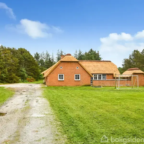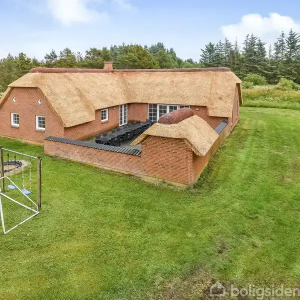 Åbent hus med tilmeldingskrav 3/2 - klik på billede - Renoveret Pool-fritidshus beliggende på en 5.009 m2 stor letholdt naturgrund i Vester Husby, et af de smukkeste områder langs den jyske vestkyst, tæt ved Vesterhavet og Husby Klitplantage. Opført i røde sten med stråtag fra 2024 og hvide plast vinduer i bondehusstil. Dertil udhus opført i samme materialer samt ugenert gårdhave. Huset er beliggende på en blind vej i den nordligste del af Vester Husby, ikke langt fra købmand, campingplads og restauranten i Vedersø. Indrettet med entré med håndvask, vaskemaskine og tørretumbler - 6 soveværelser fordelt på to afdelinger med 3 i hver (16 sovepladser) og 2 flotte badeværelser med bruseniche – godt depotrum til opbevaring - lyst køkken fra 2017 i åben forbindelse til alrum og stue med pænt møblement og brændeovn - Lækker poolafdeling med loft til kip, swimmingpool, rutsjebane, lille børnebassin, spabad, badeværelse med bruseniche, sauna og teknikrum. Udgang fra både stuen og poolafdelingen til terrassen/gårdhaven. Sælger har endvidere udskiftet loft over alt til troldtekt, ligesom gulve er udskiftet og hele huset er blevet malet på ny. Poolhuset er i dag tilmeldt udlejning, men har indtil for nylig været annonceret med gamle fotos, hvorfor der er indhentet udlejningsbudget med udgangspunkt i den fine stand huset fremstår i i dag. Kan rekvireres ved kontakt til EDC Ulfborg