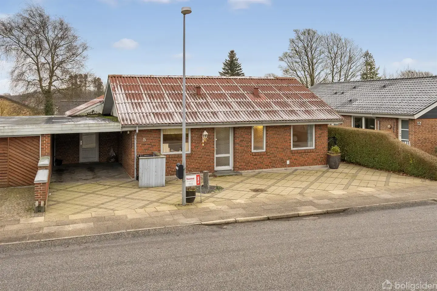 På Syrenvej 5 ligger en hyggelig og velindrettet etplansvilla i røde mursten med et klassisk og hjemligt udtryk. Huset fremstår med en pæn, flisebelagt forplads, som giver et ordentligt ankomstområde og plads til parkering foran den integrerede carport. Her er praktisk adgang til boligen, så hverdagen fungerer nemt og bekvemt, og der er samtidig gode muligheder for opbevaring i de tilhørende udhus- og redskabsrum.Boligen er på 120 m² og byder på en funktionel og overskuelig planløsning, hvor kva