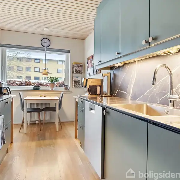I kan flytte direkte ind i denne godt indrettede og yderst velholdte toværelses lejlighed, der befinder sig i stueplan, så I ikke skal tænke på at gå på trapper. Lejligheden har et næsten nyrenoveret køkken, som stod færdigt i midten af 2025 med blandt andet særdeles flotte og meget holdbare bordplader, der tåler op til 600 graders varme. Væggene matcher bordpladerne helt perfekt, og de lakerede parketgulve er ligeledes med til at give lejligheden en imødekommende og attraktiv fremtrædelsesform, så I kan se frem til at rykke ind og møblere boligen. I får en regulær stue med skydedør ud til terrassen, et godt soveværelse, badeværelse med vaskemaskine og en entré til at binde det hele sammen. En af boligens meget store herlighedsværdier er den lækre terrasse, som I har adgang til via skydedøren i stuen, og som er effektivt afgrænset af hegn ind mod naboerne, hvilket gør den dejligt privat. Det er sådan et sted, som man i den grad vil glæde sig til at komme hjem til, for her kan I sidde fuldstændig uforstyrret. Det er ligeledes værd at notere sig, at der er et stort parkeringsområde ved jeres bebyggelse, hvor både I og jeres gæster kan parkere frit og ganske gratis. Det fredelige og grønne nærmiljø kan næsten få én til at glemme, hvor central beliggenheden er, for sagen er, at I ikke skal gå mere end fem minutter for at komme til nærmeste supermarked, ligesom I hurtigt kan cykle til City 2 og stationen, hvorfra der er hurtige togforbindelser til København og ud på Sjælland. Når du køber en bolig gennem EDC, har du mulighed for at få en gratis flytteforsikring. Ønsker du denne, skal du sende en mail med "Ja tak" til [email protected]