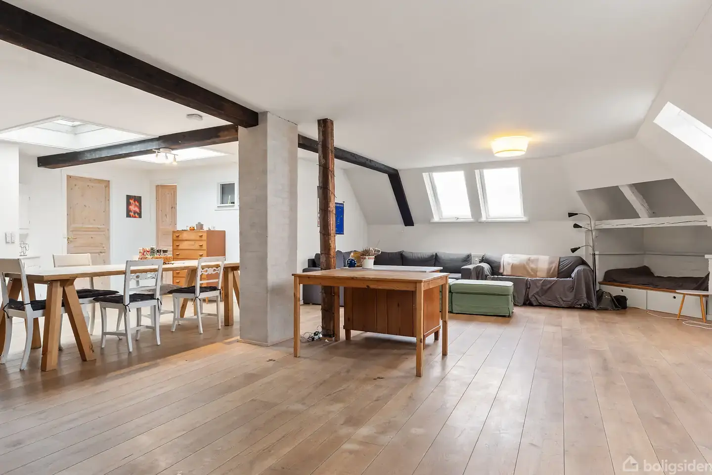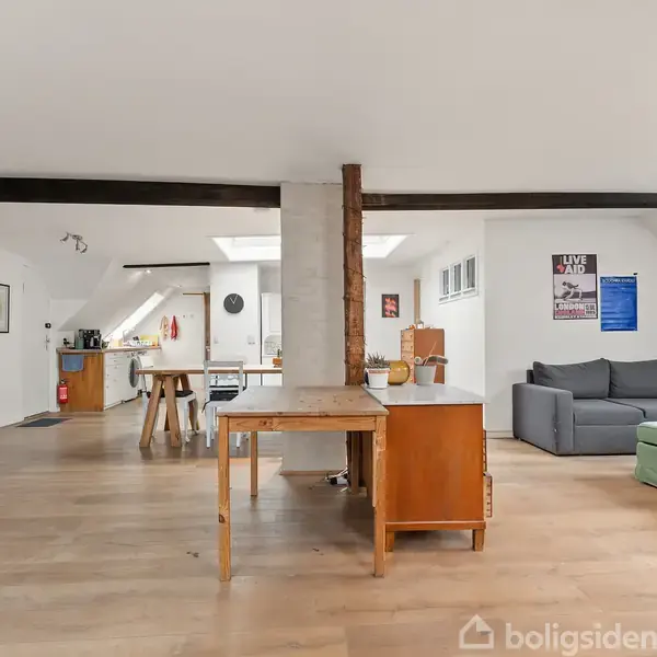 Øverst beliggende. Kæmpe køkken-alrum. Perfekt planløsning. Altan. Unikke detaljer. Velkommen til Tagensvej 77, 5. tv. – en fantastisk lejlighed, der er øverst beliggende og måske en af Nørrebros bedst udnyttede. Lejligheden byder på smukke, originale detaljer, mange vinduer samt specielle Velux skylights ovenlysvinduer, som tilsammen sikrer et fantastisk lysindfald. Her får du fritlagte bjælker, smukke egetræs plankegulve og en bolig i særdeles god stand med en gennemtænkt og fleksibel planløs