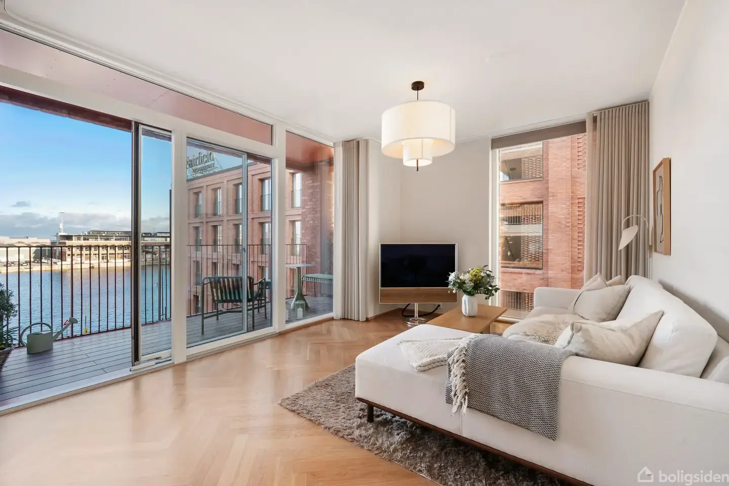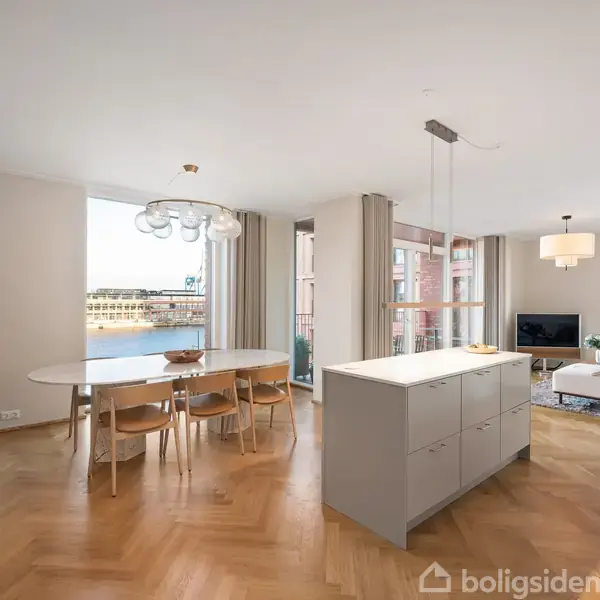 Velkommen til Tallinngade 8, 3. tv, hvor du møder en perle af en lejlighed, beliggende midt i det vibrerende Nordhavn. Denne rummelige 4-værelses lejlighed på 138 m² forener moderne komfort med en stemning af eksklusivitet og ro. Lyse og åbne indendørsomgivelser Træd indenfor, og du vil straks blive mødt af et indbydende hjem med gennemgående sildebensparket, der bringer klassisk elegance til den moderne bolig. Lejlighedens hjerterum er det store køkken/alrum, hvor Uno Form køkkenet står som et