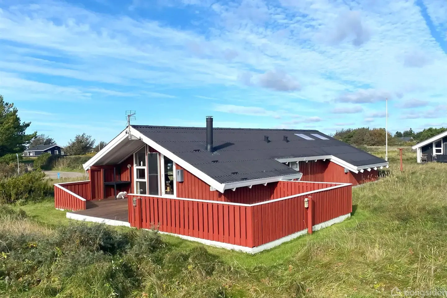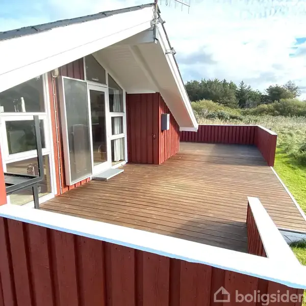 Absolut velholdt rødmalet fritidshus på 64 kvm. hvortil kommer 4 kvm. integreret udhus og 28 kvm. carport med redskabsrum. Beliggende på en 1479 kvm. stor naturgrund med stor syd- og østvendt terrasse. Omkring 1 km. til 1'ste klasses badestrand og 2 km. til Hirtshals by. Fritidshuset, der er opført i 1985 (carport fra 1995), har sortmalet eternittag, termovinduer, ludbehandlet indvendigt træværk, loft til kip, trægulve, tilsluttet offentlig kloak og opvarmes ved el-varme, luft til luft varmeblæser og brændeovn i stuen. Indeholder: entré med garderobeplads, lyst badeværelse med bruseniche, klinkegulv og gulvvarme, soveværelse med faste skabe, værelse med 2 køjepladser, fast skab og opgang til hems, køkken i åben forbindelse til opholdsstue hvor der er alkove, brændeovn og udgang til stor delvis overdækket syd- og østvendt terrasse, redskabsrum. Alt fremtræder pænt og velholdt!