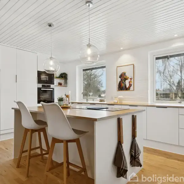 Villa på 196 m² i ét plan med fire værelser, stor grund og naturskøn beliggenhed. Denne velindrettede villa fra 1976 byder på 196 m² i ét plan og er beliggende på en stor og ugeneret grund på 1.399 m². Her er god plads til både familieliv, hjemmekontor og gæster – alt sammen i fredelige omgivelser tæt på skov, sø og åbne landskaber.Villaens arkitektur i røde mursten kombineret med brede glaspartier skaber et smukt lysindfald og en naturlig sammenhæng mellem inde- og udeliv. Den store terrasse, s