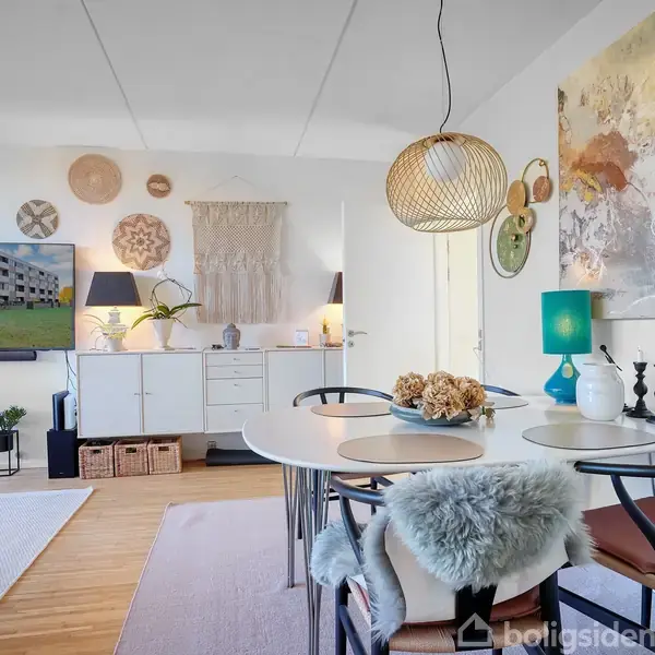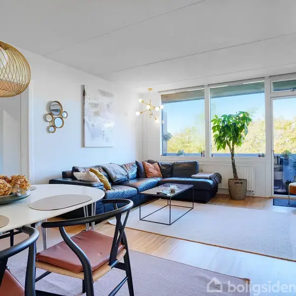 Lys, luft og udsigt - pæn og hyggelig lejlighed med vestvendt altan Drømmer du om en lejlighed med masser af naturligt lys og en skøn, grøn udsigt? Så se mere på lejligheden her, hvor lyset strømmer ind fra store vinduespartier, og hvor du straks kan føle dig hjemme i en hyggelig atmosfære - og nyde solnedgangen fra altanen. Du træder ind i en rummelig entré med god skabsplads til overtøj og sko. Herfra fordeler lejligheden sig til et lyst og velholdt køkken, hvor der tilmed er en mindre, men